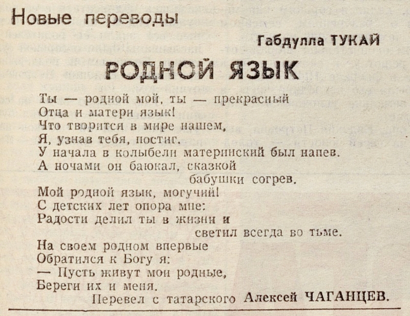 После 1917 года творчество Тукая активно переводилось на языки народов СССР: узбекский, туркменский, казахский языки.