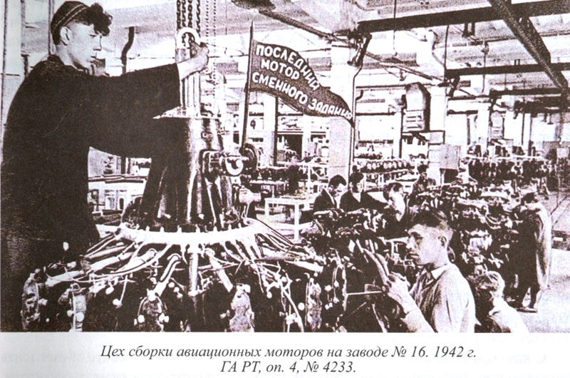 «В первые дни войны трудящиеся столицы Татарии города Казани дали клятву Родине перестроить работу промышленности на военный лад, все силы и знания отдать на помощь фронту» [3]. Фабрики и заводы, выпускавшие мирную продукцию, стали перестраиваться на производство боевой техники и вооружения для Красной Армии. В тяжелое военное время женщины, представители старшего поколения, подростки заменили в заводских цехах, на колхозных полях и фермах, других учреждениях своих отцов и мужей, братьев и сестер, ушедших на фронт.