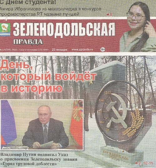 10. День, который войдет в историю // Зеленодольская правда. – 2025. – 23 января. – С. 1, 2, 10 –11.