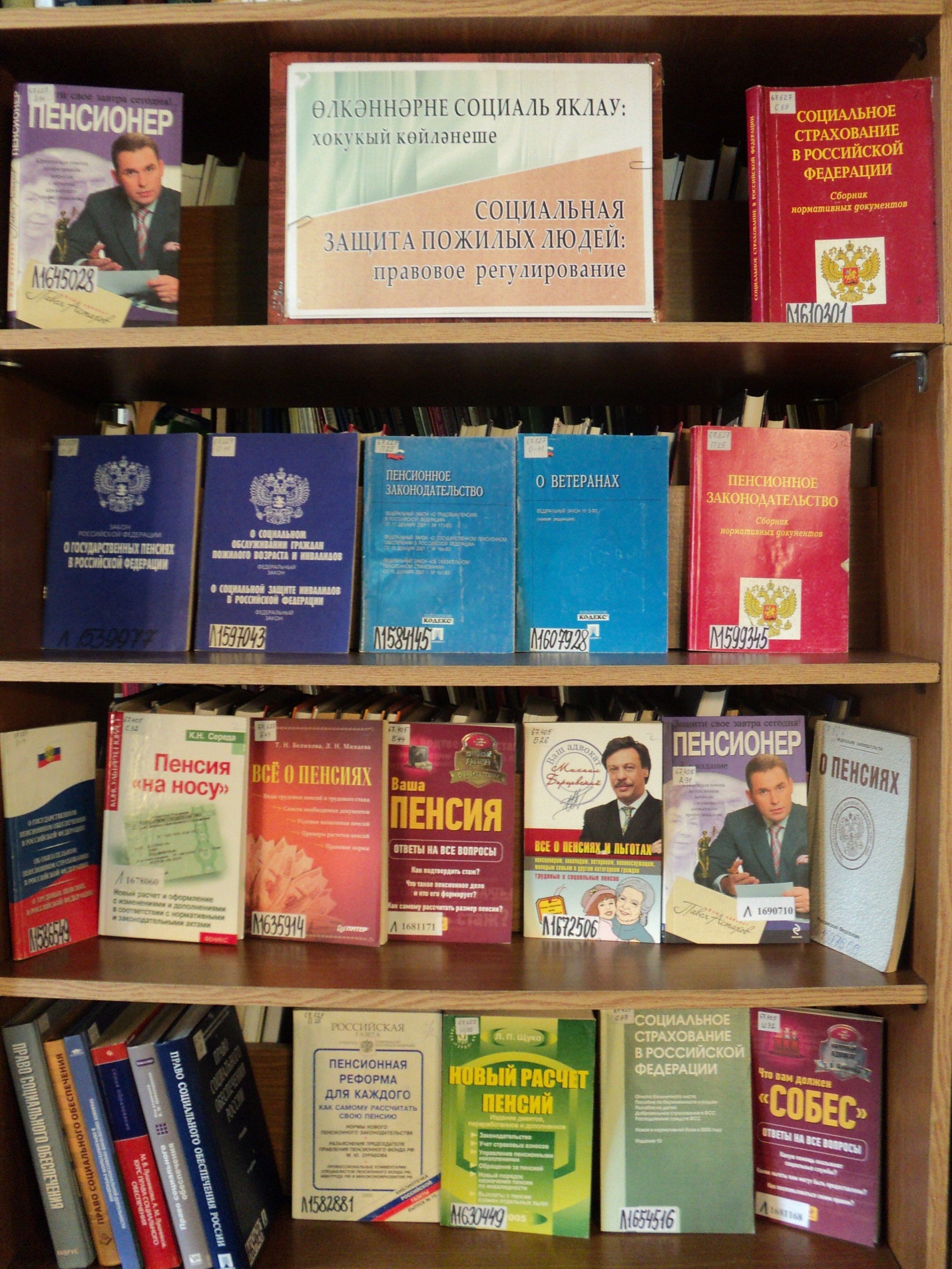 Наряду со сборниками нормативных документов о социальном страховании и пенсионном законодательстве в РФ на выставке представлена популярная литература, в доступной форме дающая ответы на многочисленные вопросы, в числе которых различные аспекты пенсионной реформы, новый расчёт пенсий и др.