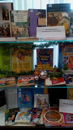 Раздел о череде новогодних праздников. Издания о Новом годе, Рождестве, святках представлены в праздничном убранстве.