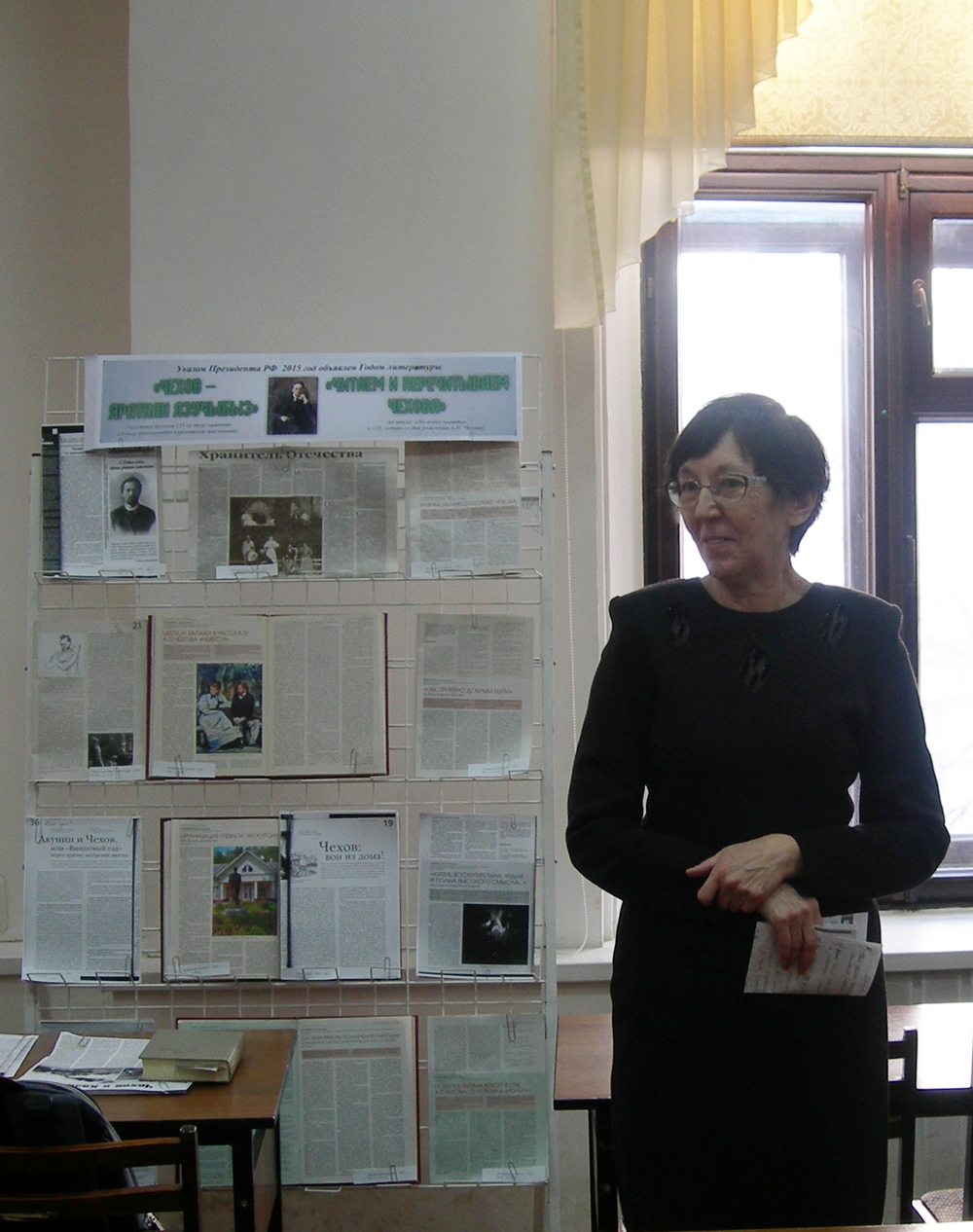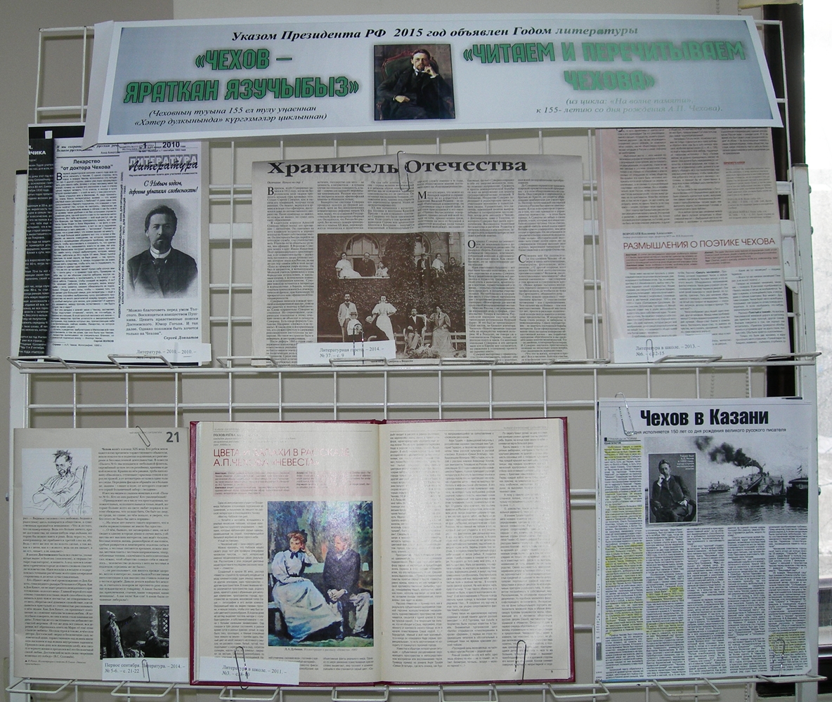 В рамках Года литературы в РФ 26 января 2015 года в отделе периодических изданий Национальной библиотеки Татарстана (ул. К. Маркса, д. 36) состоялся обзор для учащихся 10-х классов гимназии № 3 из цикла «Часы литературы» к 155-летию со дня рождения А.П.Чехова (1860-1904 гг.).
