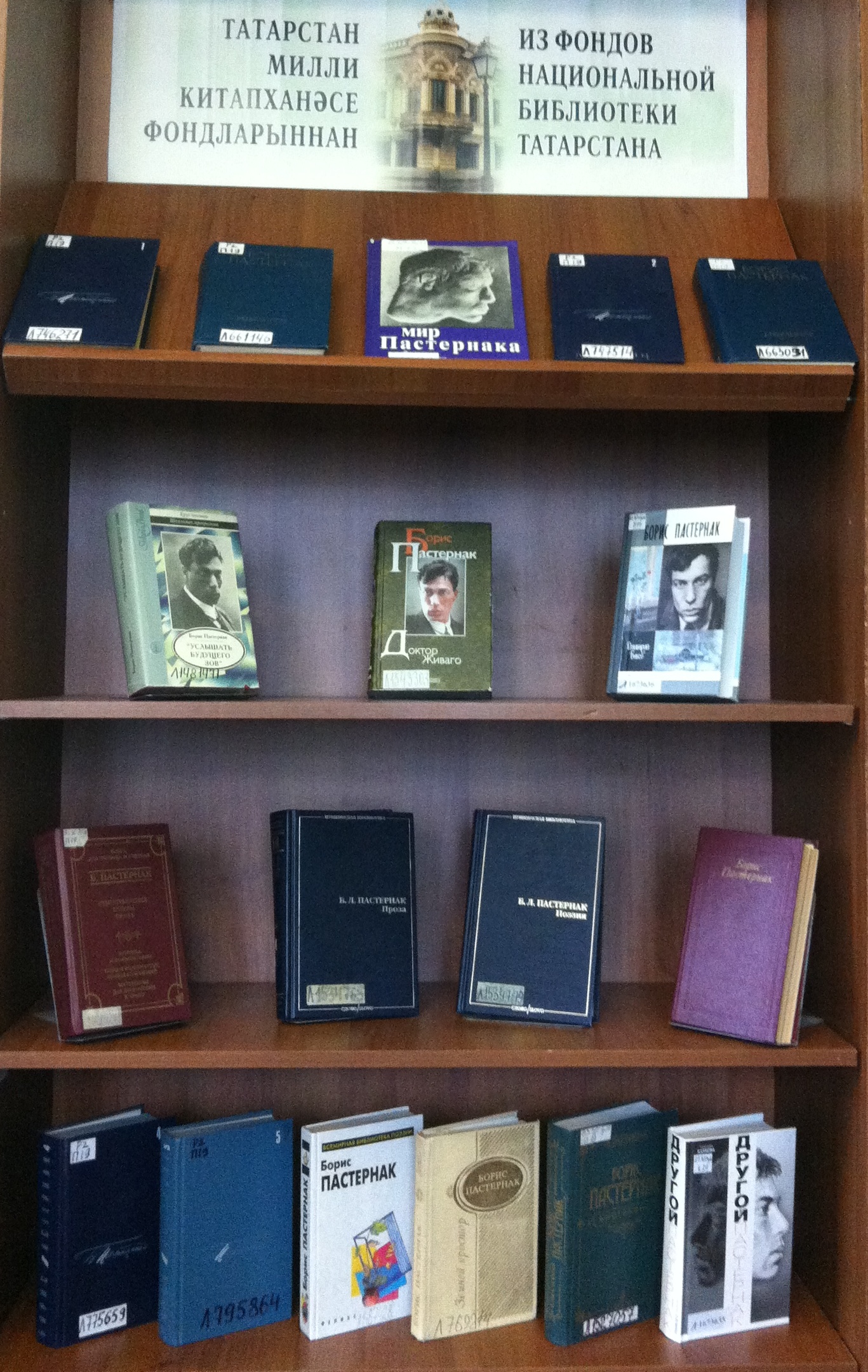 На выставке представлено полное собрание стихотворений и поэм Бориса Пастернака, издававшихся при жизни автора и подготовленных им для печати; первая биография, написанная сыном Евгением на основе богатейшего архивного материала – документов, писем, воспоминаний современников; жемчужина выставки – роман «Доктор Живаго», принёсший мастеру мировую известность и Нобелевскую премию.