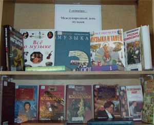 Международный день музыки был учрежден 1 октября 1975 года по решению ЮНЕСКО. Праздник отмечается ежегодно во всем мире. В информационно-библиографическом отделе НБ РТ открыта выставка информационно-справочных изданий (энциклопедий, словарей, справочников и т.п.) посвященных сокровищнице мировой музыкальной культуры.