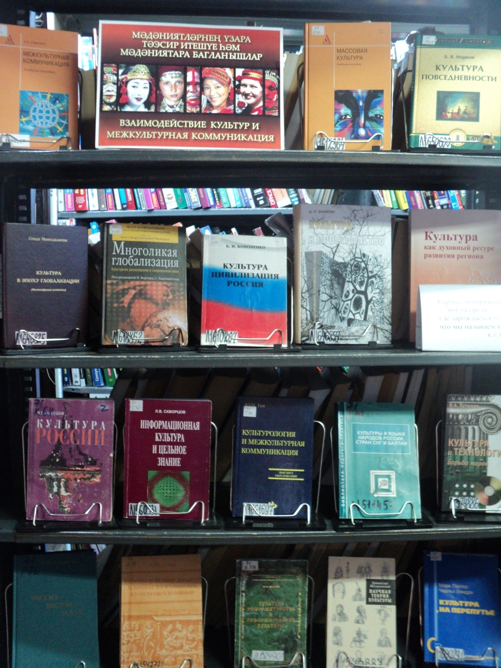 На выставке представлены документы, раскрывающие роль межкультурной коммуникации во внутрироссийских и общемировых процессах. Это книги о культуре народов России, стран ближнего и дальнего зарубежья. Широко представлены издания, затрагивающие различные аспекты межкультурной коммуникации: культура повседневности, культура в эпоху глобализации, информационная культура и др.
