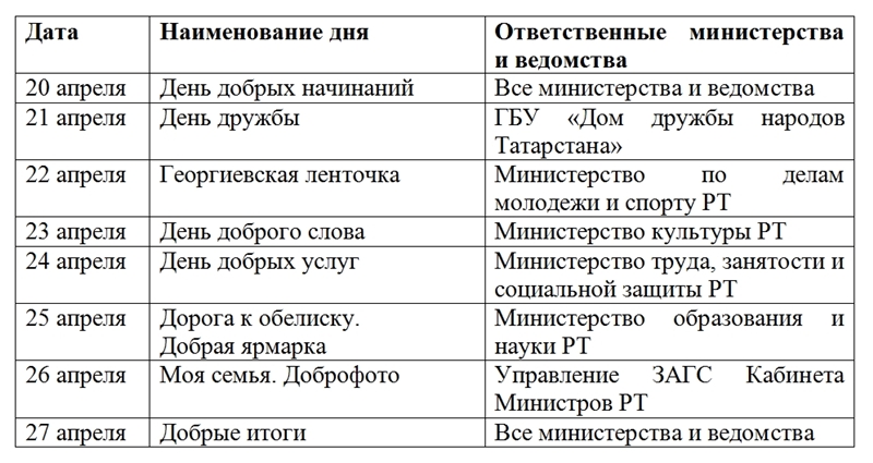 В рамках форума республиканского общественного движения «Вместе с Президентом» было объявлено о проведении добровольческой акции «Весенняя неделя добра - эстафета добрых дел» #ДОБРЫЙТАТАРСТАН#МЫВМЕСТЕ на территории Республики Татарстан с 20 апреля по 27 апреля 2015 года.