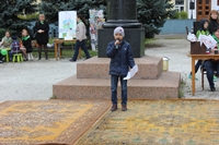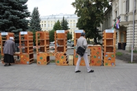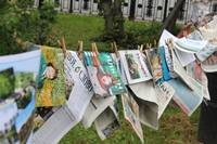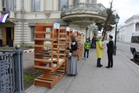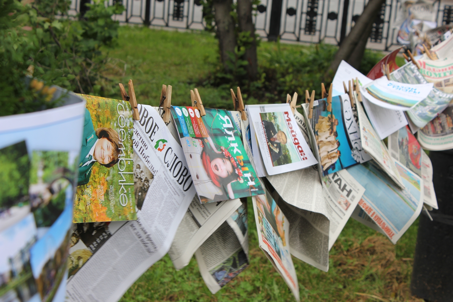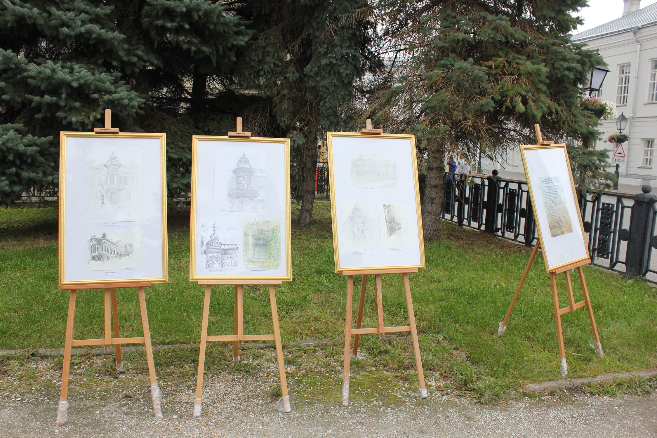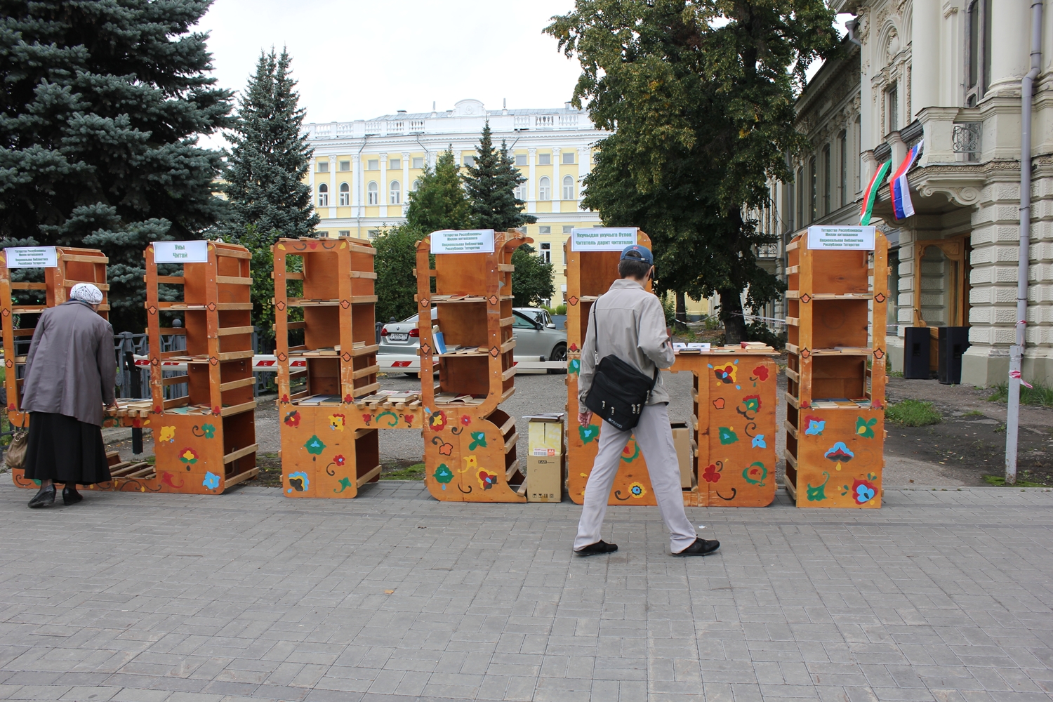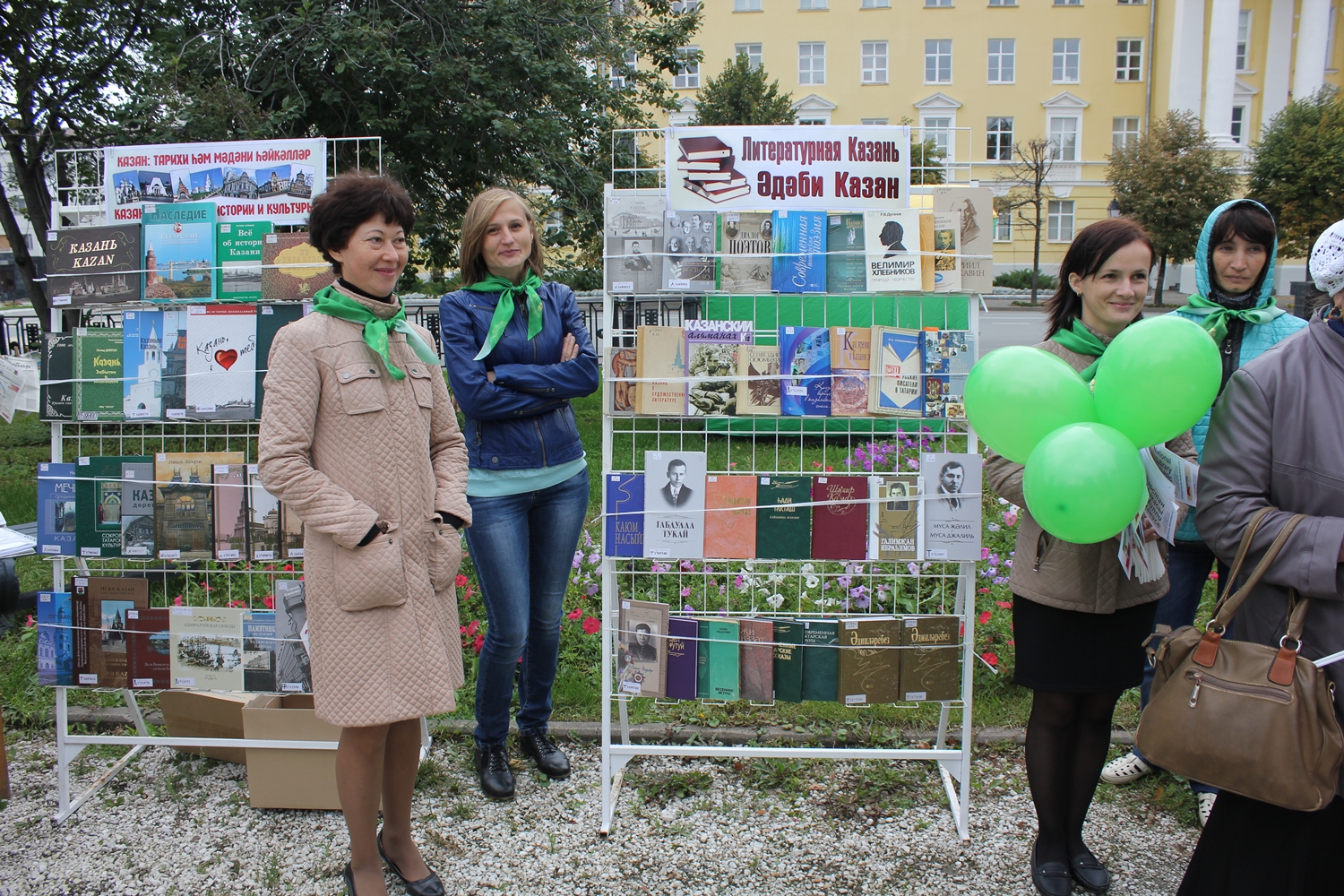 Несмотря на пасмурное небо и хмурые тучи с раннего утра было суетно, торопливо подготавливались стенды для витрин и другое оборудование. Выстроились тематические книжные выставки «Литературная Казань», «Секреты ландшафтного дизайна», «Дом друзей», среди деревьев растянулись вереницы периодических изданий. У центрального входа со стороны улицы Кремлевской посетителей встречала экспозиция «Рисуем библиотеку», на которой были представлены работы учащихся Детской художественной школы №1 г. Казани.
