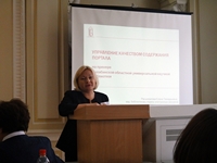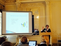 Профессор кафедры документоведения и информационной аналитики СПбГИК Гордукалова Г. Ф. в своем докладе сделала акцент на оперативную обзорную информацию. «Аналитик в библиотеке – сотрудник, хорошо знающий информационные ресурсы по профилю библиотеки, основные методы анализа, умеющий получать выводное знание по запросу читателя. Читательская аудитория быстро меняется, и как никогда важно выявление новых групп потенциальных читателей, «недообслуженных» читателей» - отметила она.