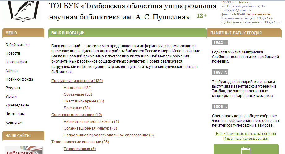 1. Тамбовская ОУНБ. Электронное издание «Банк инноваций»