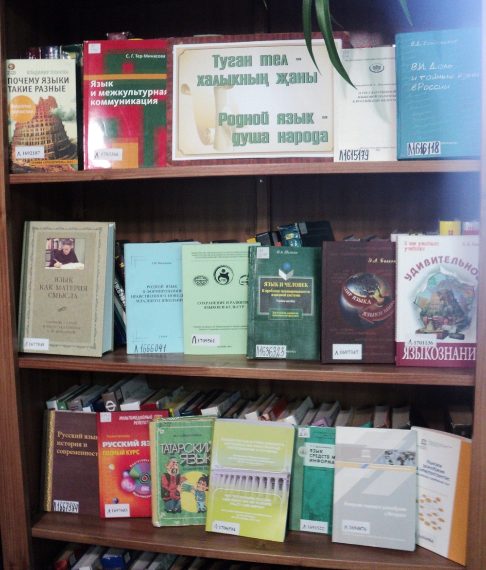 Международный день родного языка был учреждён в 1999 году решением 30-й сессии Генеральной конференции ЮНЕСКО. На выставке, подготовленной к этому событию, представлены учебные пособия, монографии, научно-популярные издания. В них раскрывается роль и значение языка в межкультурной коммуникации и развитии цивилизации, поднимаются вопросы сохранения и развития языков как условия сохранения идентичности народов, прослеживается история возникновения языков и их современное состояние. Отдельные книги посвящены русскому и татарскому языкам.