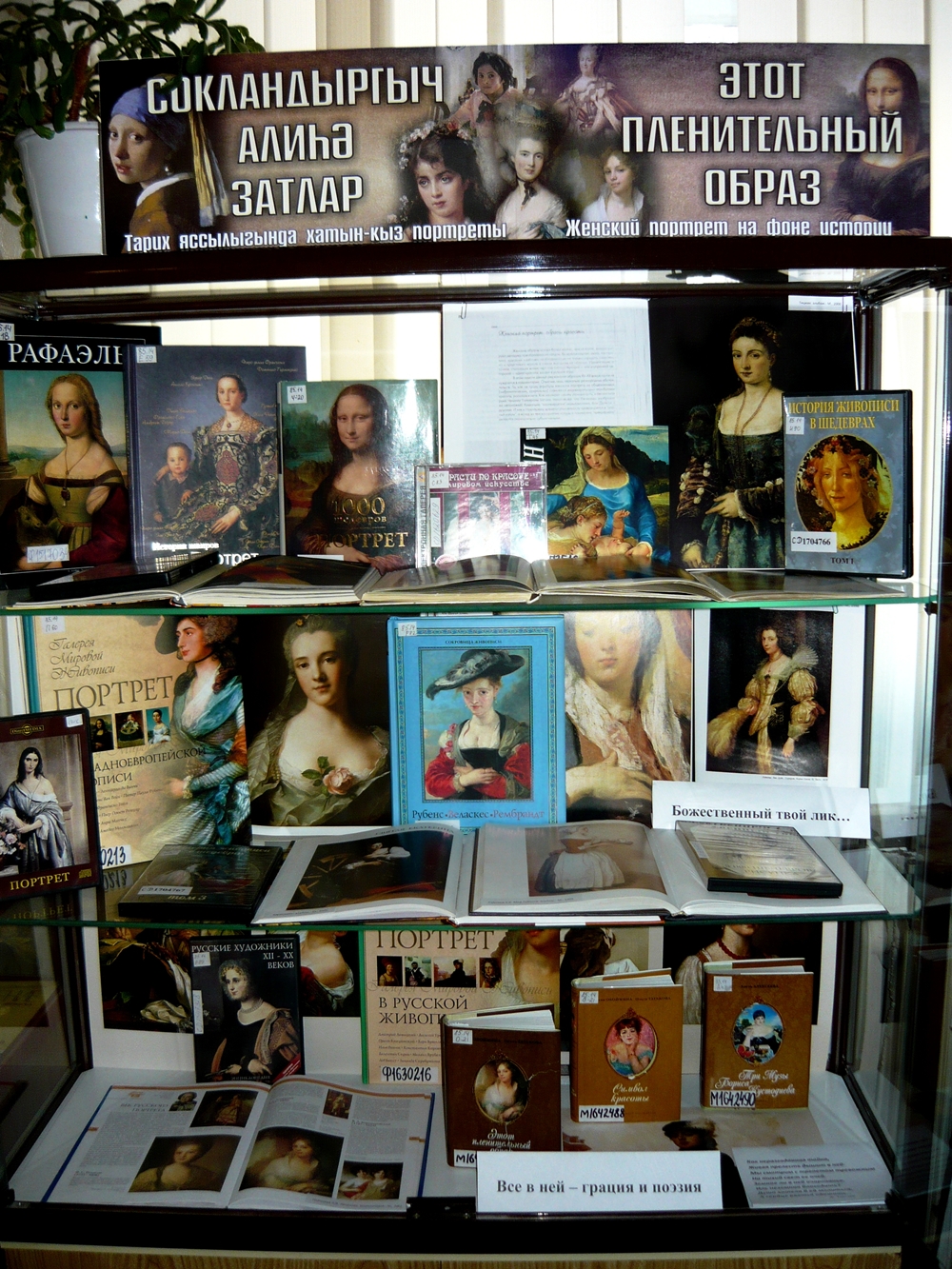 О прекрасных женских образах в изобразительном искусстве расскажет книжная выставка «Этот пленительный образ. Женский портрет на фоне истории », представленная в отделе искусств Национальной библиотеки Республики Татарстан с 1 по 30 марта 2016 года (ул. Театральная, д. 5).