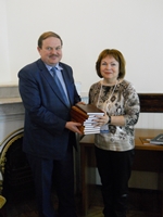 В ходе экскурсии по главному зданию Национальной библиотеки Республики Татарстан гостью познакомили с уникальными интерьерами памятника архитектуры федерального значения, рассказали об истории создания и сегодняшнем дне одной из крупнейших библиотек страны. Людмила Владимировна встретилась с заместителем директора по научной работе библиотеки Иреком Габделхаевичем Хадиевым. В ходе встречи она рассказала о деятельности МСК, в том числе, об организации выездных выставок экслибрисов и миниатюрных книг, а также выступила с предложением взаимовыгодного сотрудничества. В дар Национальной библиотеке Республики Татарстан были преподнесены книги и недостающие номера «Альманаха библиофила».