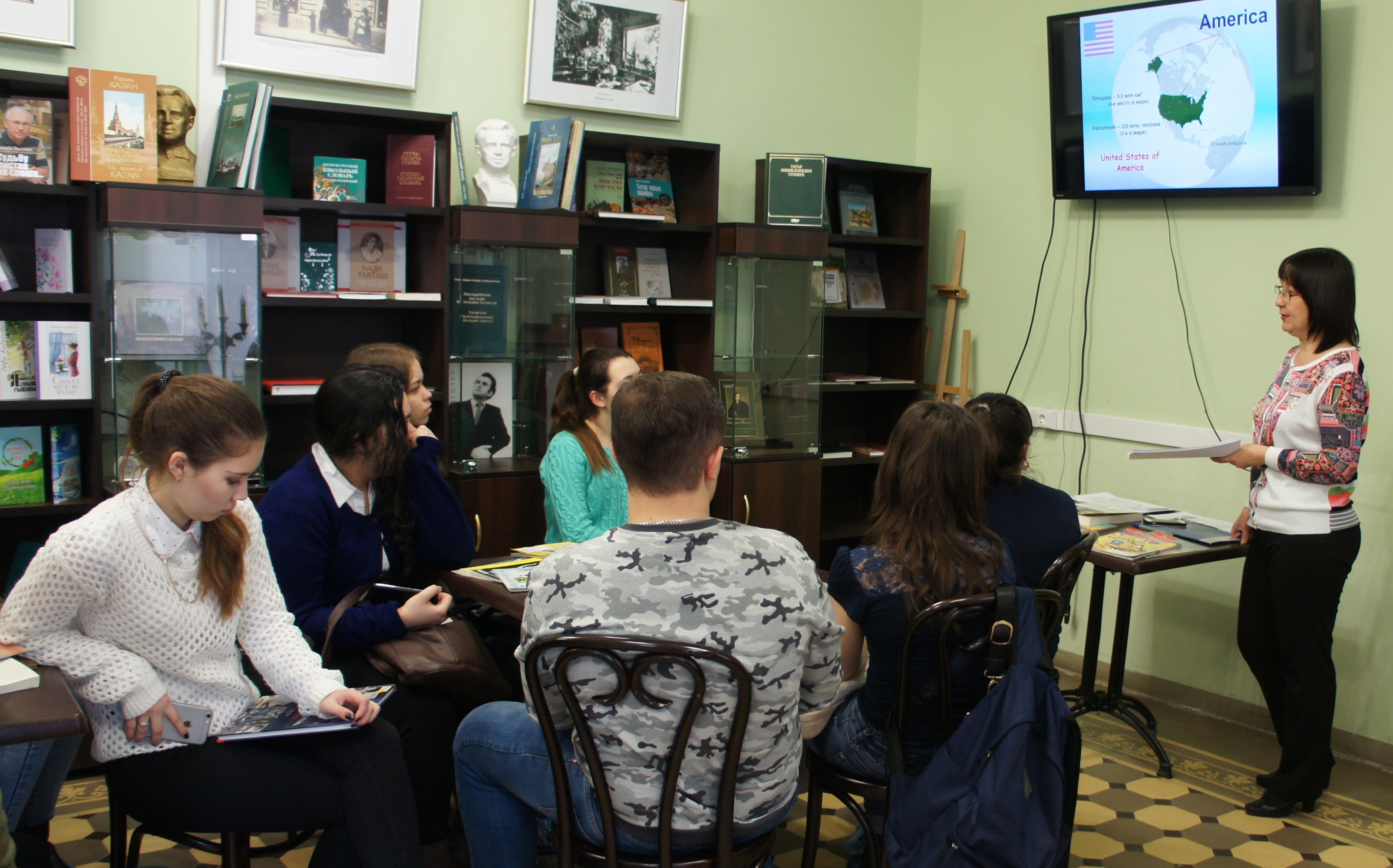 20 апреля 2017 года сотрудники отдела литературы на иностранных языках Национальной библиотеки Республики Татарстан представили презентацию «Политическая система США» для студентов 1 курса юридического факультета Казанского инновационного университета им. В.Г. Тимирясова.