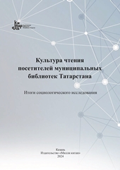 Культура чтения посетителей муниципальных библиотек Татарстана. Итоги социологического исследования / Национальная библиотека Республики Татарстан; сост. Э.Г. Хусаинова; отв. ред. И.Г. Хадиев. – Казань: Милли китап, 2024. – 72 с. Издание подготовлено по итогам социологического исследования, посвящённого изучению культуры чтения посетителей муниципальных библиотек республики. В ходе исследования охвачены следующие аспекты темы: цели чтения респондентов, степень осознанности при выборе книг, ориентировка в источниках информации о книгах, использование ресурсов интернет, регулярность и систематичность чтения, привычки и навыки чтения. |