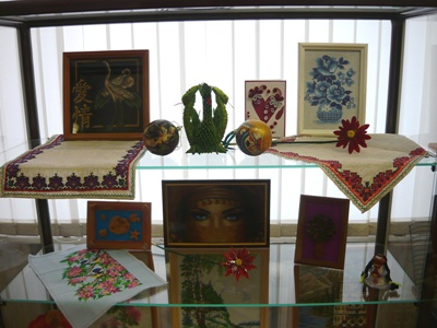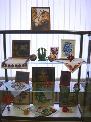 Күргәзмә китапханә хезмәткәрләренең оста куллары белән ясалган эшләнмәләр урнаштырылуы белән кызыклы.