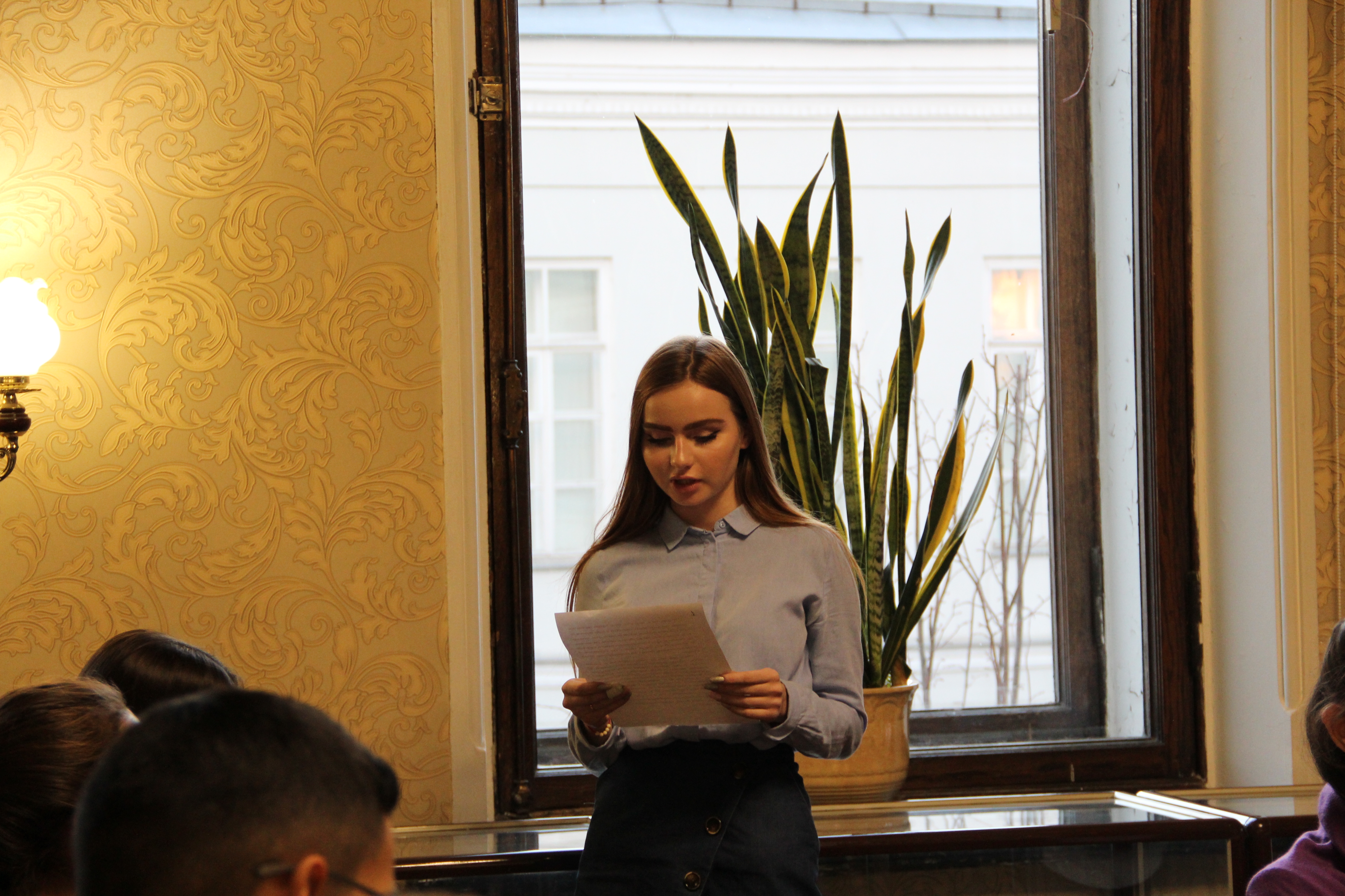 В.Г.Тимирясов исемендәге Казан инновацияләр универститеты студентлары Чыңгыз Айтматовның «Плаха» әсәреннән өзекләрне сәнгатьле итеп яттан башкардылар. Соңыннан башка катнашучылар да романнан кайбер өзекләрне кычкырып укыды. Әсәр буенча фикер алышулар романда күтәрелгән проблемаларның хәзерге көндә дә әһәмиятен югалтмавын раслады.