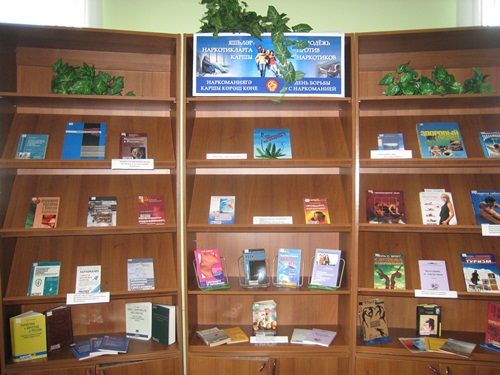 26 нчы июнь көнне дөнья җәмәгатьчелеге наркоманиягә һәм наркотикларның законсыз әйләнешенә каршы көрәш көнен билгеләп уза. Әлеге дөньякүләм вакыйга уңаеннан Татарстан Республикасы Милли китапханәсенең күргәзмәләр һәм мәдәни программалар бүлегендә (Казан, Кремль ур., 33 нче йорт) «Яшьләр наркотикларга каршы» дип исемләнгән китап күргәзмәсе ачылды.