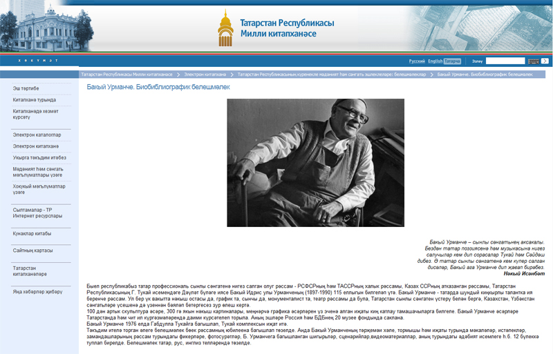 Быел республикабыз татар профессиональ сынлы сәнгатенә нигез салган олуг рәссам – РСФСРның һәм ТАССРның халык рәссамы, Казакъстан ССРның атказанган рәссамы, Татарстан Республикасының Г. Тукай исемендәге Дәүләт бүләге иясе Бакый Идрис улы Урманченың (1897-1990) 115 еллыгын билгеләп үтте. Әлеге юбилей уңаеннан Милли китапханә сайтының «Электрон китапханә» сәхифәсендә мәгълүмат-библиография һәм сәнгать бүлекләре тарафыннан төзелгән
