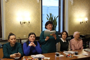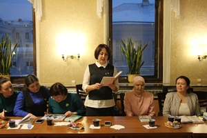 Утырышны модератор – Милли китапханәнең күргәзмәләр һәм мәдәни программалар бүлеге мөдире Гөлназ Гадрахманова – авторның иҗаты белән таныштырудан башлады. Саба районыннан килгән хезмәттәшләребез Гөлсинә ханымның районда гына түгел, республика күләмендә әдәбият сөючеләр белән актив эшчәнлеген ассызыклап, аңа рәхмәт сүзләре җиткерделәр.