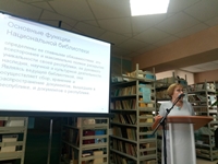 Бүлекнең фәнни хезмәткәре Л.Н. Нәбиуллина «Татарстан Республикасы Милли китапханәсенең кулъязмалар һәм сирәк китаплар бүлегендә мәгълүмати технологияләр» исемле докладын тәкъдим итте. Әйдәп баручы фәнни хезмәткәр Р.Ү. Елизарова «Документаль чыганакларны өйрәнү нигезендә Татарстан Республикасы Милли китапханәсенең тарихи үсешен күзаллау» доклады белән чыгыш ясады.