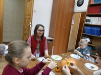 Халыкара Хэллоуин бәйрәме алдыннан мастер-класста катнашучылар фетрдан күңелле кабак рәвешендәге үзенчәлекле аксессуар-брошь әзерләделәр. Гадәт буенча кабак бу бәйрәмдәге төп билгеләрнең берсе булып тора. Андагы киселгән сурәт явыз рухларны куркыта дип санала.