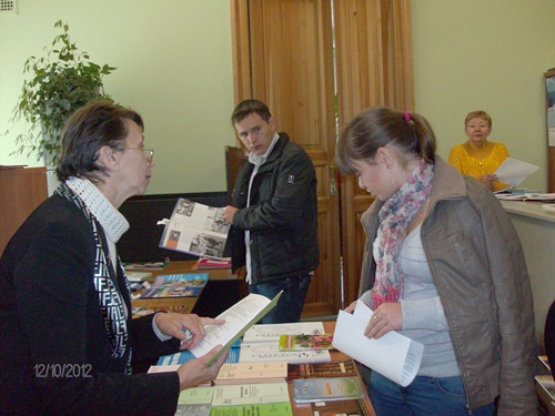 2012 елның 12 октябрендә Татарстан Республикасы Милли китапханәсенең мәгълүмат-библиография бүлегендә Казан энергетика университетының культурологлар төркеме өчен «Мәдәни-буш вакытны оештыру эшчәнлеге ресурслары укуны тәмамлаучыларга ярдәмгә» дигән мәгълүмат көне уздырылды. Мәдәни-буш вакытны оештыру эшчәнлегенә караган мәгълүмати чыганаклардан: Информкультура басмаларыннан, мәдәният һәм сәнгатькә караган вакытлы басмалардан, сценарийлардан, электрон төрдәге материаллардан торган күргәзмә оештырылды. Татарстан Республикасы Милли китапханәсе фондларында булган әлеге темага караган ресурсларга күзәтүдән тыш, Татарстан Республикасы Милли китапханәсе сайтында читтәге файдаланучылар өчен мәгълүмат ресурслары презентациясе үткәрелде. Болар: «Татарстан Республикасының күренекле мәдәният һәм сәнгать эшлеклеләре» сериясеннән электрон белешмәлекләр һ.б. электрон материаллар: «Татарстан Республикасының дәүләт һәм рәсми символлары», «Сабантуй», «Безнең якташлар 1812 елгы сугышта: кавалерист кыз Надежда Дурова» һ.б.