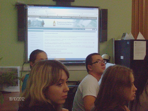 Тыңлаучыларда социомәдәни һәм буш вакытны оештыру эшчәнлегенә караган Интернет ресурсларына күзәтү – презентация зур кызыксыну уятты. Алар арасында: хокукый тәэмин итү, Информкультура ФТҮ сайты, Татарстан Республикасы Милли китапханәсе сайты ресурслары, аеруча «Татарстан Республикасының күренекле мәдәният һәм сәнгать эшлеклеләре» сериясеннән электрон белешмәлекләр, «Сабантуй» һ.б. бар иде.
