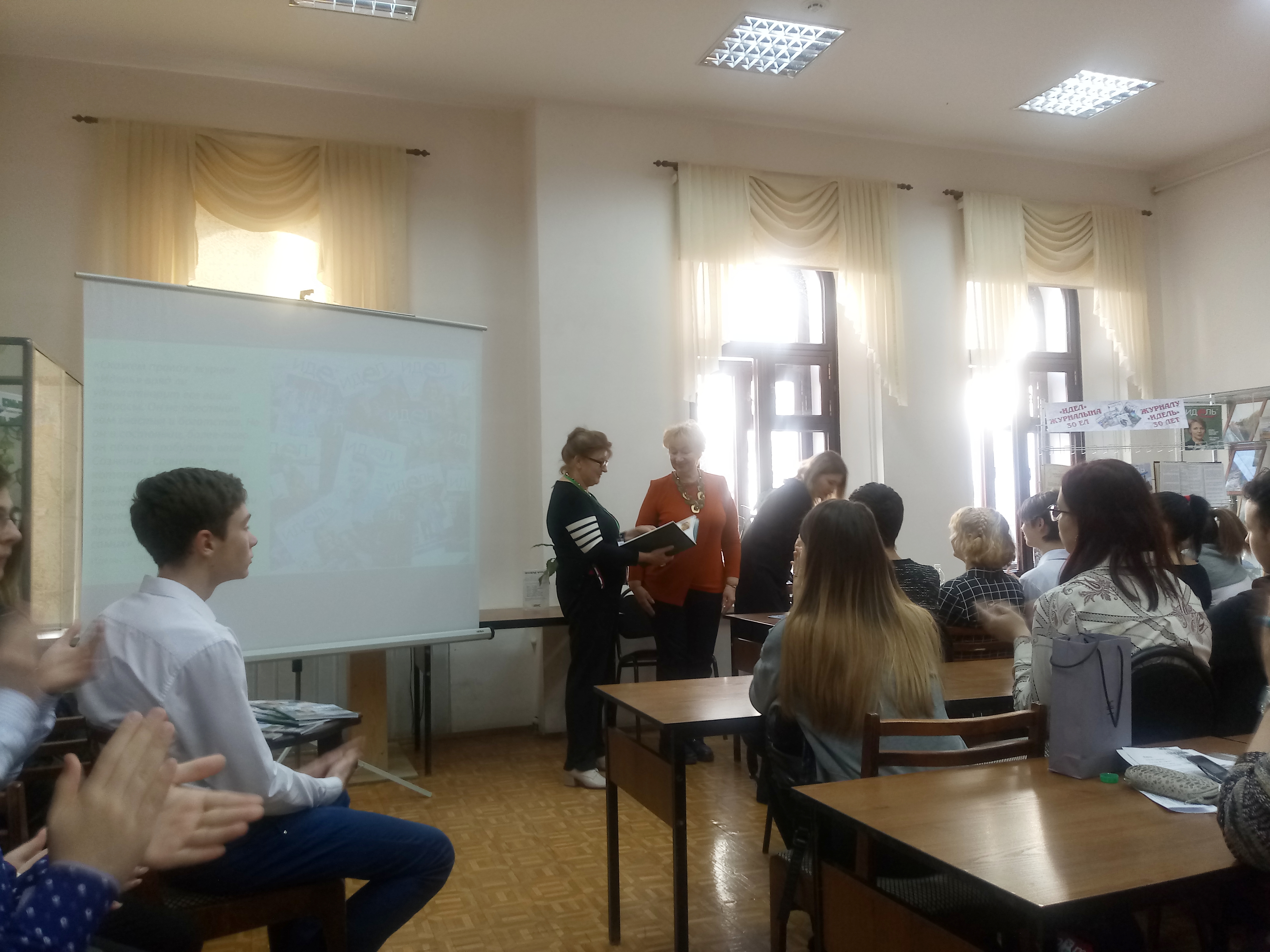 В.Г.Тимирясев исемендәге Казан инновацияләр университетында эшләп килүче колледжның студентлары 2019 елның 15 ноябрендә Татарстан Республикасы Милли китапханәсенең уку залында (Казан, К.Маркс ур., 36 йорт) «Идел» журналының баш мөхәррире Альбина Әпсәләмова белән очрашты. Әлеге очрашуны китапханәнең вакытлы матбугат бүлеге хезмәткәрләре журналның басыла башлавына 30 ел тулу уңаеннан оештырды.