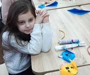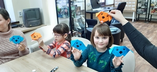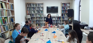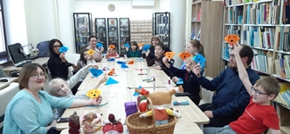 Китапханә хезмәткәрләре курчак ясау буенча дәрес-остаханә (мастер-класс) үткәрде. Балалар шулай ук оригами сәнгате белән дә танышты һәм кәгазьдән уенчык эт, кулъяулыктан биләүле курчак ясады. Төсле карандашлар белән этнең күзләрен, борынын, телен ясап ябыштырдылар. Үз куллары белән уенчыклар ясауны балалар бик яратты.