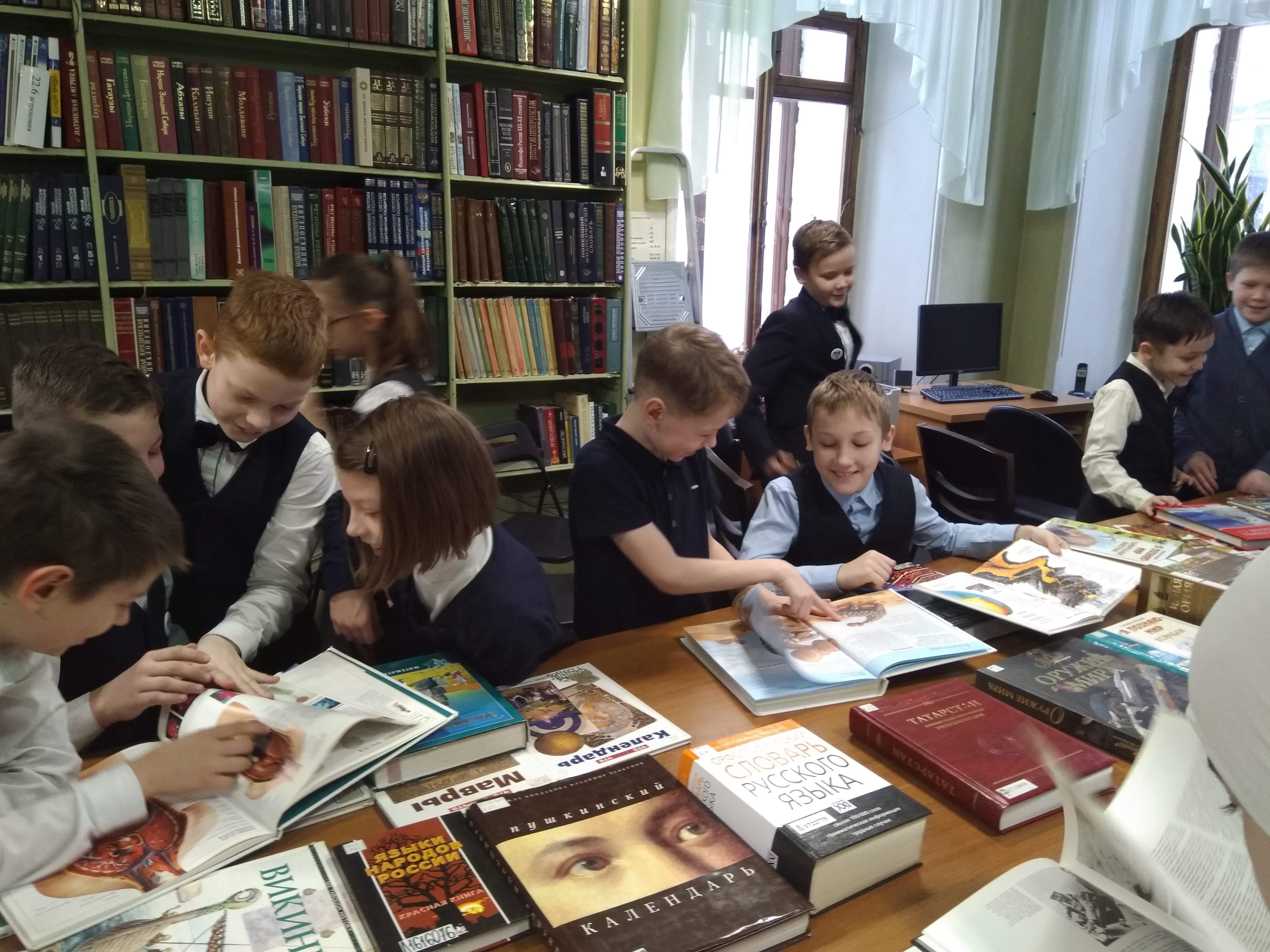 Казан шәһәренең 185 нче лицееның 4 нче сыйныф укучылары китапханә белән таныштылар. Бүлек хезмәткәрләре мәктәп укучыларын каталоглардан һәм бүлекнең белешмә фондыннан файдаланырга өйрәттеләр. Укуга ярдәм итү өчен белешмә басмалар күргәзмәсе әзерләнде. Өстәмә рәвештә алар Интернет челтәрендә куркынычсызлык кагыйдәләре турында мәгълүмат алдылар. Укучыларга әлеге теманы яктырткан иллюстратив материаллар һәм видеороликлар күрсәтелде.