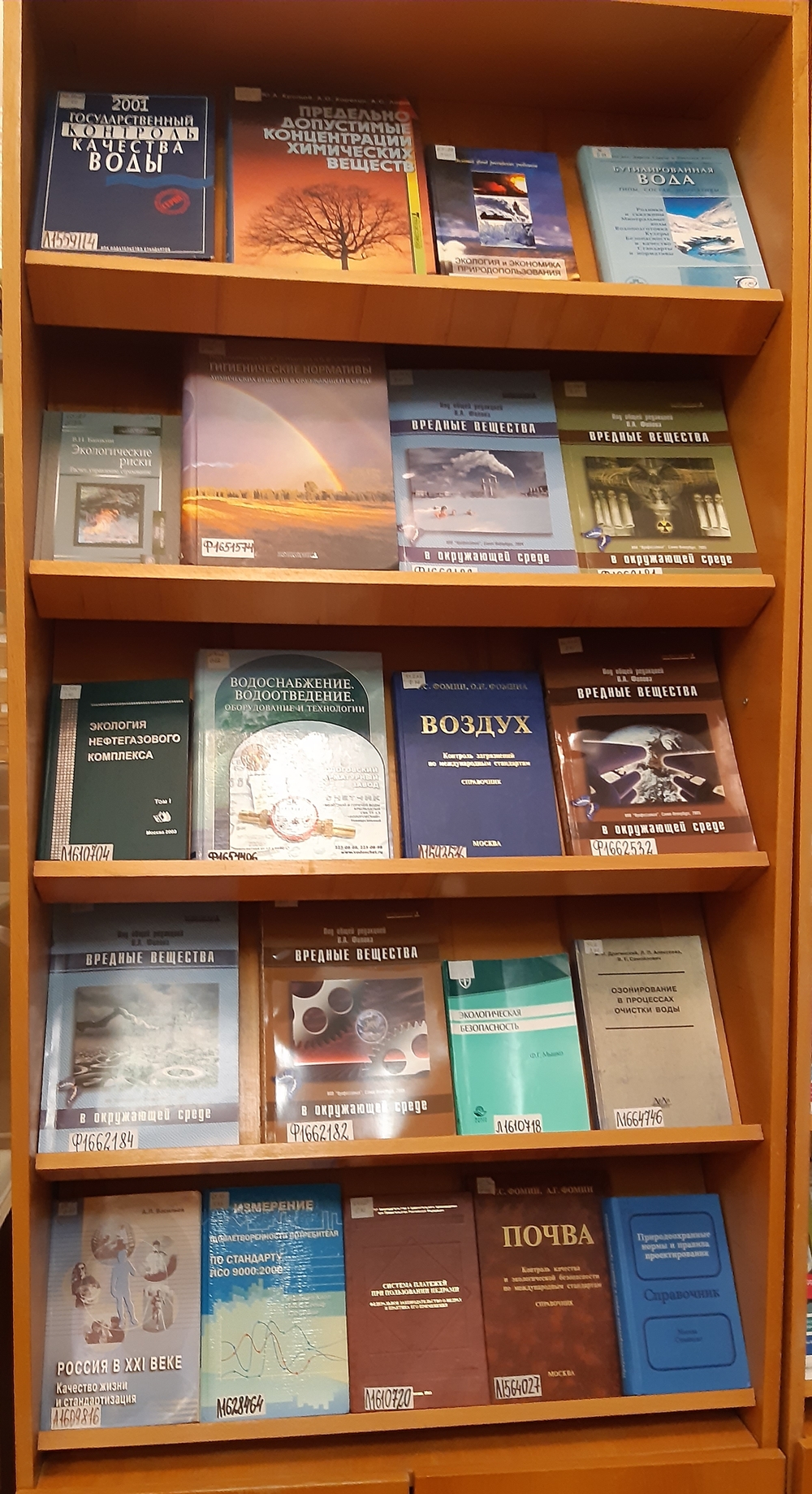 Күргәзмәдә тәкъдим ителгән әдәбиятта хәзерге шартларда экологиянең иҗтимагый, икътисадый, юридик һәм идарәчелек җәһәтләре карала. Күргәзмә материалларында кешенең яшәү тирәлеген саклауның фәнни нигезләре – экологиянең төп кануннары, шулай ук фәнни-техник үсешнең төп экологик юнәлешләре бәян ителә. Атмосфера һавасына, җир өстендәге табигый суларга җитди зыян китерүдән һәм аларны пычратудан саклауга зур игътибар бирелә. Шулай ук җитештерүдә кулланылучы һәм көнкүреш суларын чистартуның төп алымнары һәм ысуллары турындагы мәгълүматлар гомумиләштерелә. Механик, биологик, химик чистартуның һәм зарарсызландыруның төрле ысуллары буенча теоретик материалны куллануга аерым игътибар бирелә. Каты көнкүреш һәм сәнәгать калдыклары белән пычранган юынтык суларны, чыгып торган газларны биохимик чистартуның төп заманча формаларына күзәтү ясала.