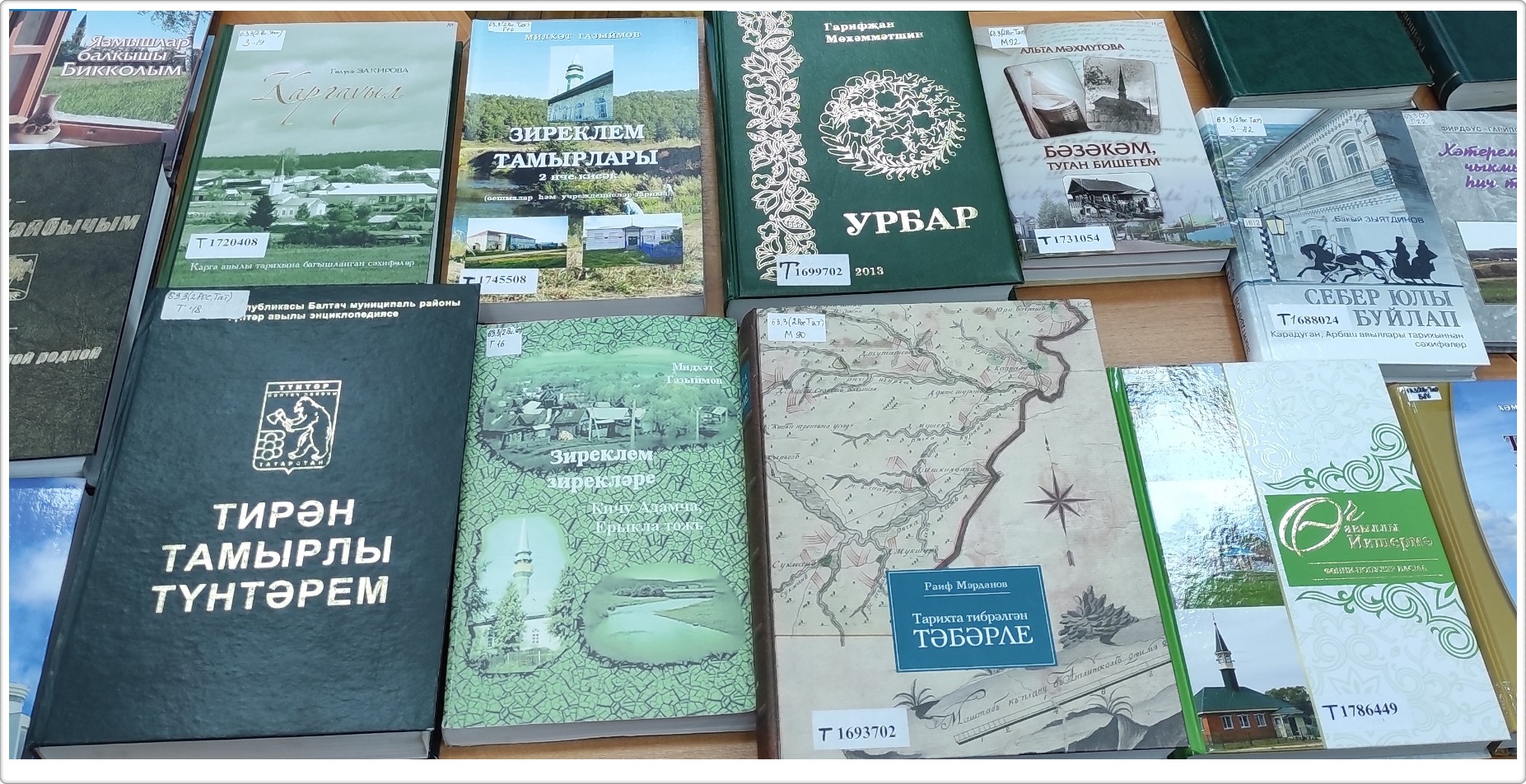 Авыллар тарихына багышлап чыгарылган, Милли китапханәдә сакланучы китапларның кайберләре.