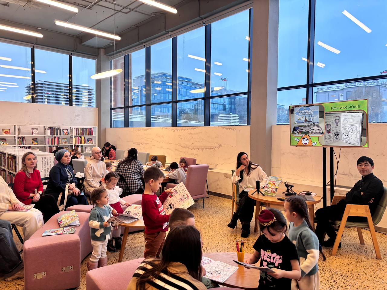 «Барсиклар һәм Неко» җыентыгын тәкъдим итүдә Казанның егермедән артык гаиләсе катнашты. Балалар комикс битләрен буяган арада, ата-аналар аны иҗат итүчеләр белән туган тел контекстында популяр мәдәният, балалар өчен мультфильмнар һәм энергияле һәм позитив Барсиклар гаиләсенең тормышка планнары турында сөйләштеләр.