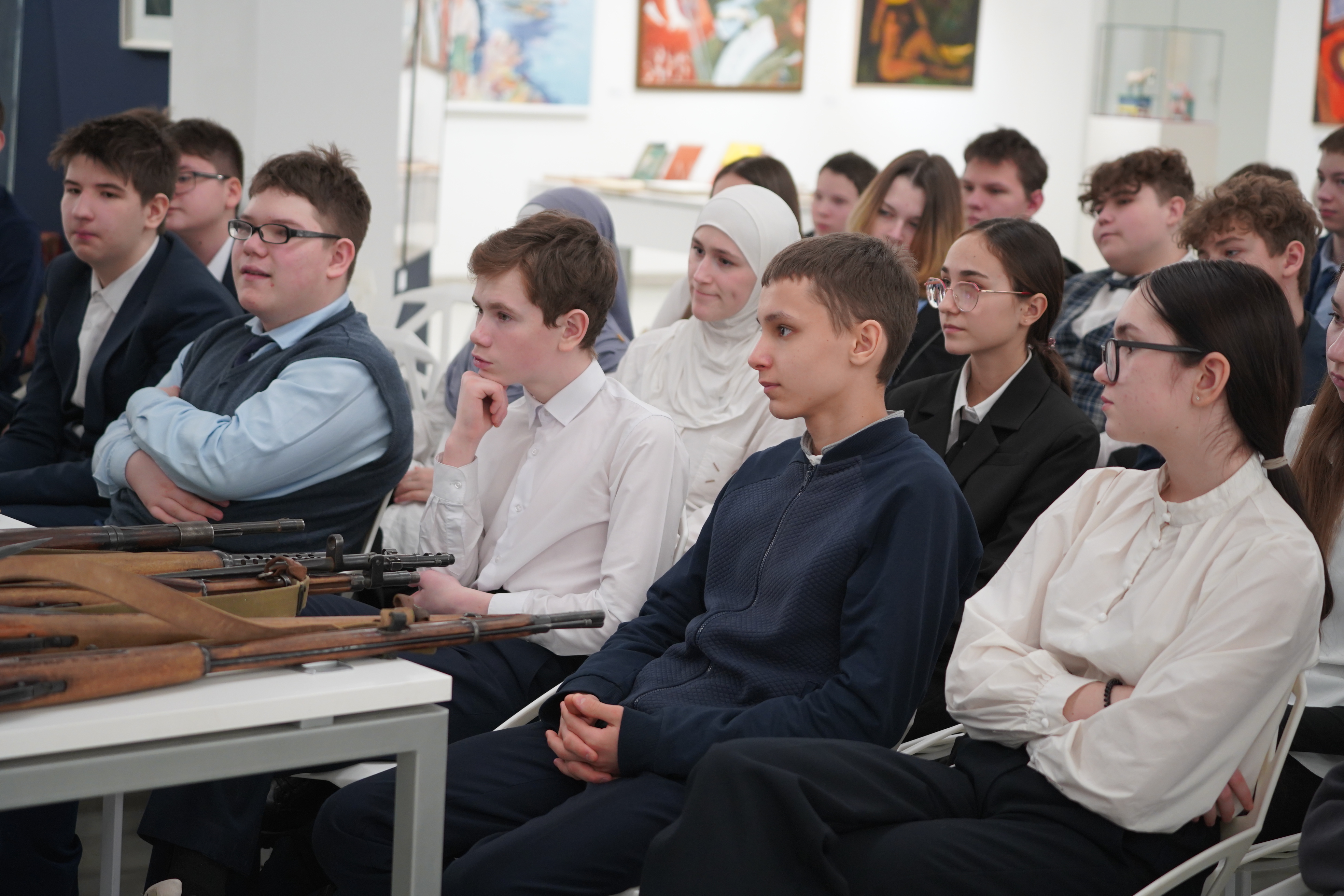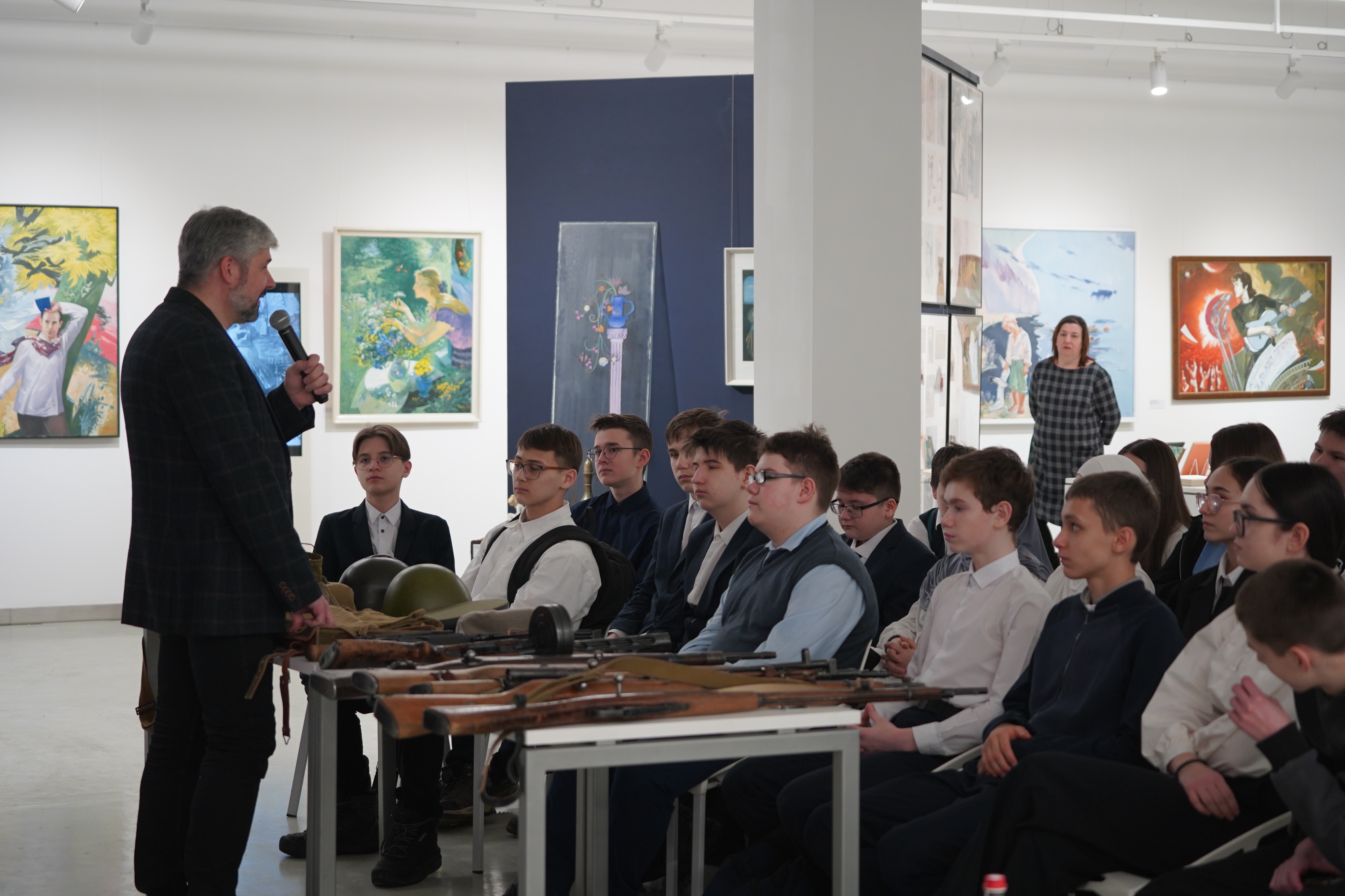Бөек Ватан сугышы Музей-мемориалы мөдире Александр Александров үзе белән Бөек Ватан сугышы чоры тарихи экспонатларын: солдатларның һәм офицерларның шәхси әйберләрен, хәрбиләрнең баш киеме үрнәкләрен, сугыш урыннарыннан кайтарылган предметларны алып килде.