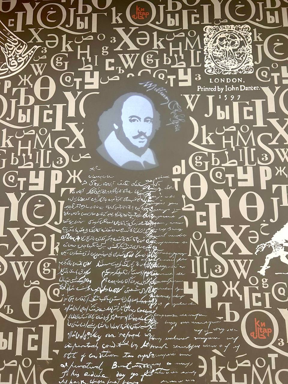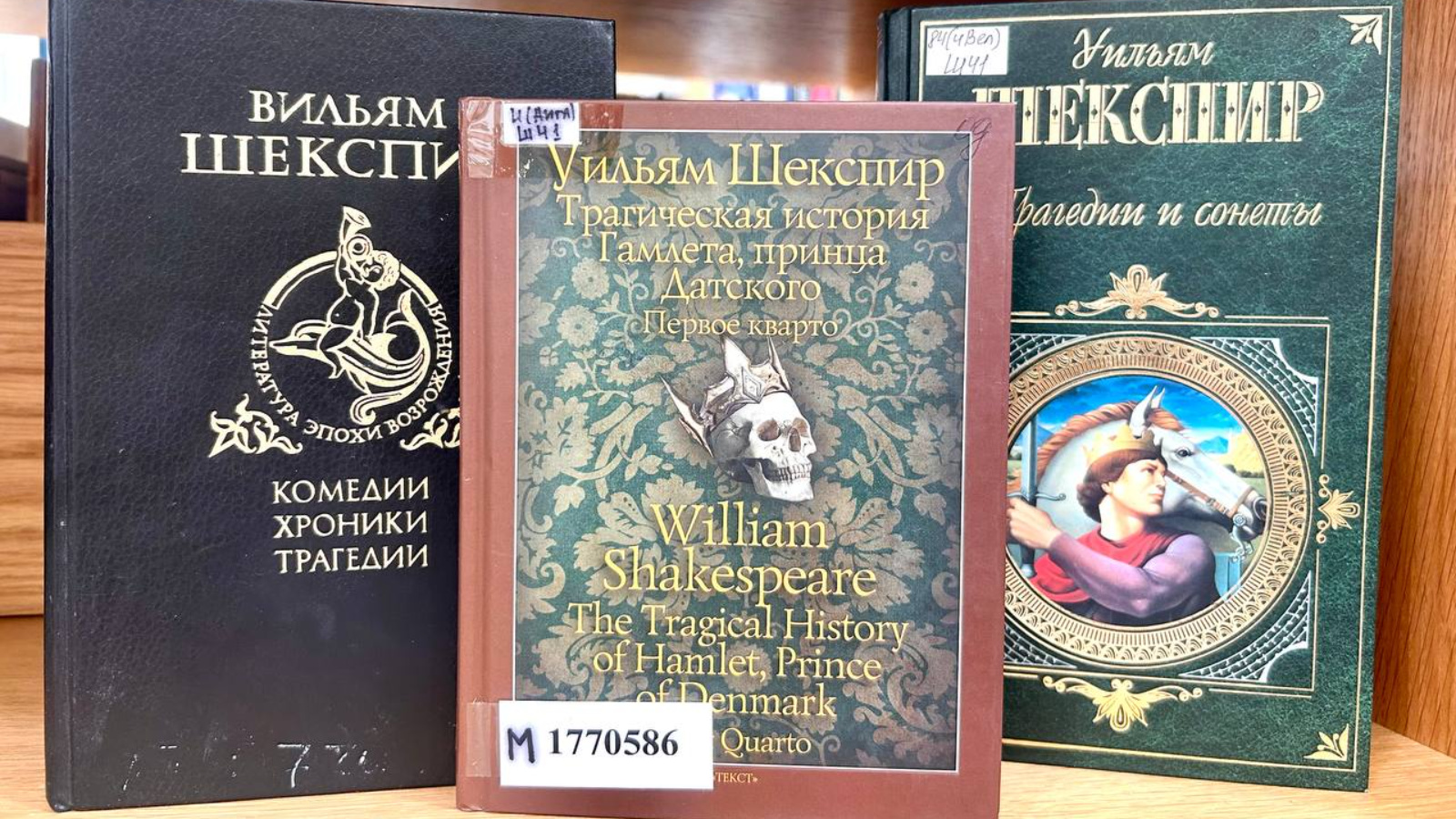Аның рәсеме китапханәбезнең бер холлын бизи, ә фондларда Шекспир турында 100 дән артык китап һәм документлар: язучының әсәрләре, аның тормышы һәм иҗаты турында әдәбият саклана. Басмалар дөньяның 8 телендә тәкъдим ителгән. Иң борынгысы - XVIII гасыр урталары - француз телендә.