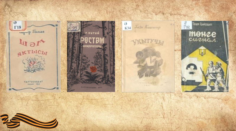 Сугыш елларында Фатих Хөснинең «Йөзек кашы» һәм Гадел Кутуйның «Рөстәм маҗаралары» повестьлары дөнья күрә. 1945 елда аның «Тапшырылмаган хатлар»ы рус телендә басыла. Китап укучылар шулай ук Кави Нәҗминең «Таныш урын», Гази Кашшафның «Укытучы», Фатих Хөснинең «Урман сукмаклары», Гариф Галиевнең «Шәм яктысы», Рахман Ильясның «Бабай», Гариф Гобәйнең сатирик хикәяләре һәм Абдулла Алишның әкиятләре, пьесалар җыентыгы, Таҗи Гыйззәтнең «Таймасовлар» драмасы һәм «Төнге сигнал» пьесасы, Әхмәт Фәйзинең «Тукай» тарихи драмасы һәм Мирсәй Әмирнең «Партизан Иван» әсәрләре белән таныша.
