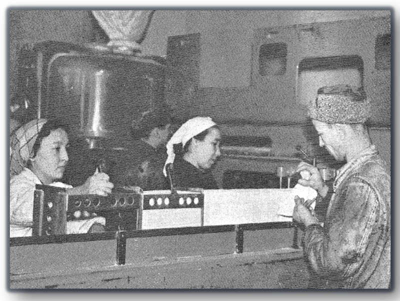 «Новость» порошогын үлчәү-төрү автоматы янында (1963 ел)