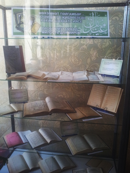 Биредә Мөхәммәд пәйгамбәргә иңгән Коръән Кәримнең 1901 нче елгы Казан басмасы, пәйгамбәрнең хәдисләре тупланган кайбер китаплар һәм аның тормышын тасвирлап татар галимнәре язган хезмәтләр урын алган.