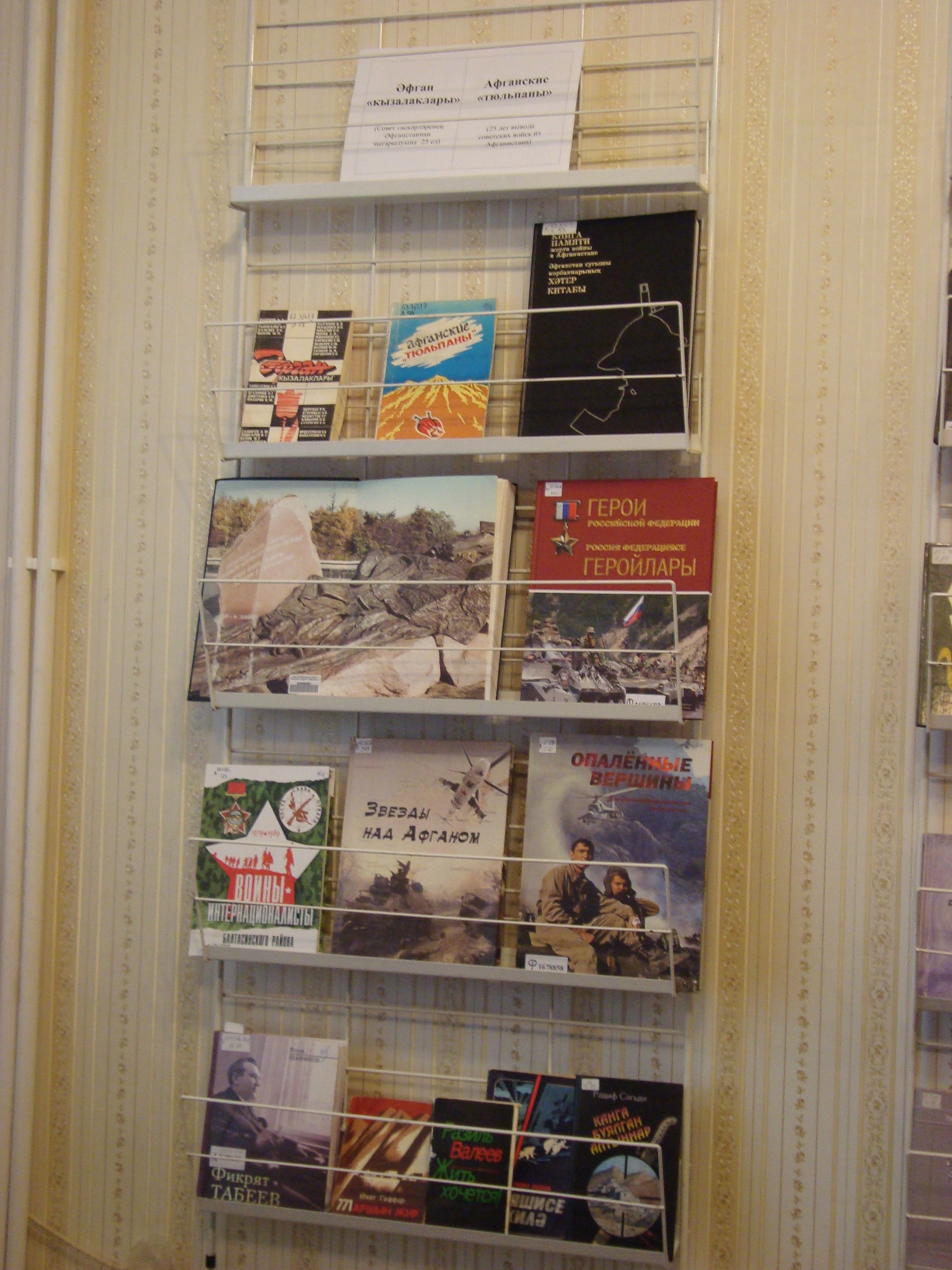 күргәзмәсе оештырылды. Бу күргәзмә илебез тарихындагы иң аянычлы вакыйгага – мәгънәсез кан коюдан торган әфган сугышына багышланган. Чит җирләрдә меңләгән совет хәрбиләре башларын салдылар. Алар арасында безнең якташларыбыз – татарстанлылар да күп. Күргәзмәдә тәкъдим ителгән китаплар әфган сугышында катнашкан ватандашларыбызның сугышчан юлын чагылдыра.