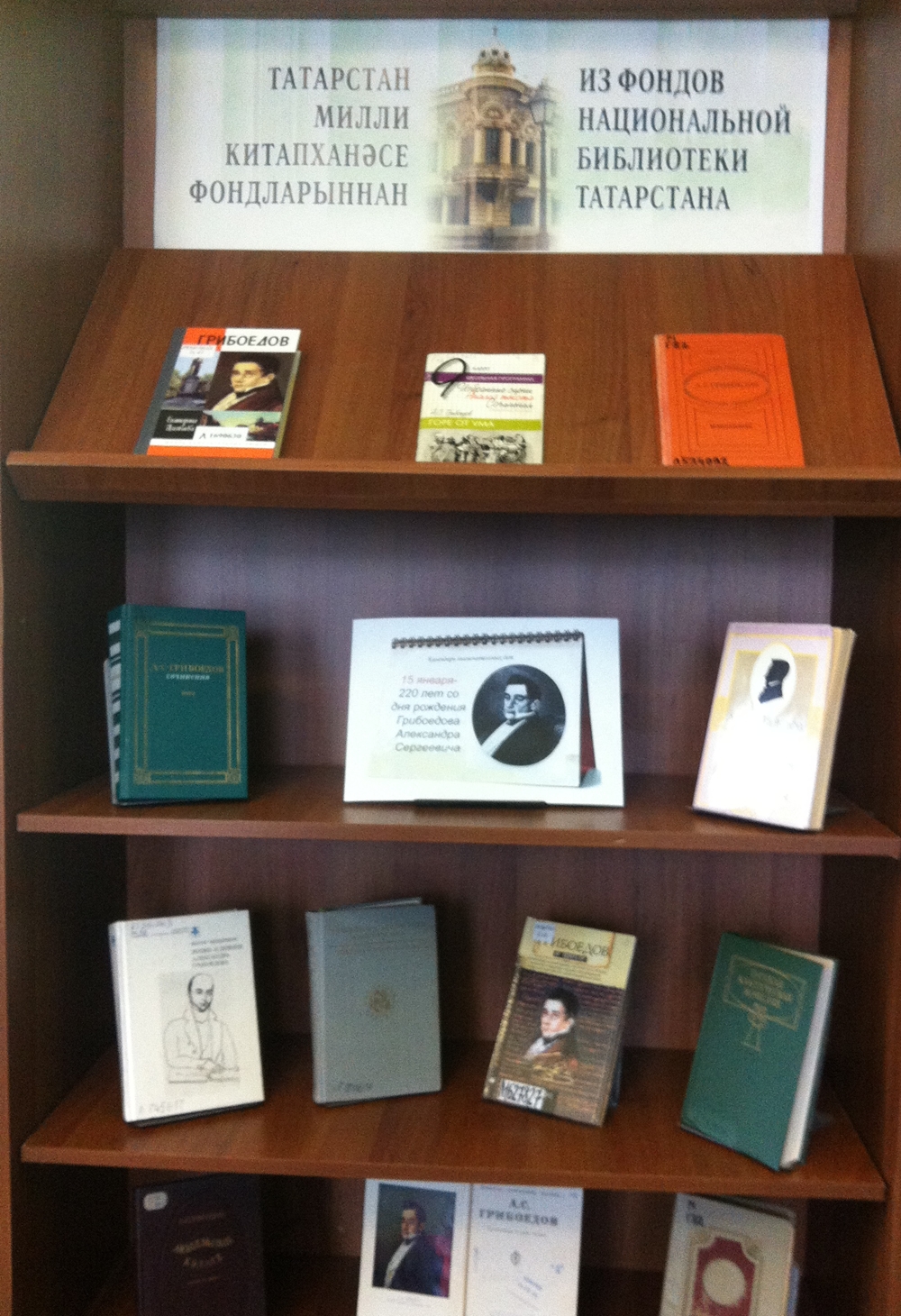 Татарстан Республикасы Милли китапханәсенең күргәзмәләр һәм мәдәни программалар бүлегендә (Казан, Кремль ур., 33 нче йорт) А.С.Грибоедовның тууына 220 ел тулуга багышланган китап күргәзмәсе ачылды.