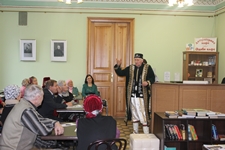 Татар дәүләт җыр һәм бию ансамбле солисты, танылган җырчы Рәшит Сөләйманов китапханәне юбилее белән котлап татар халык җырларын башкарды.