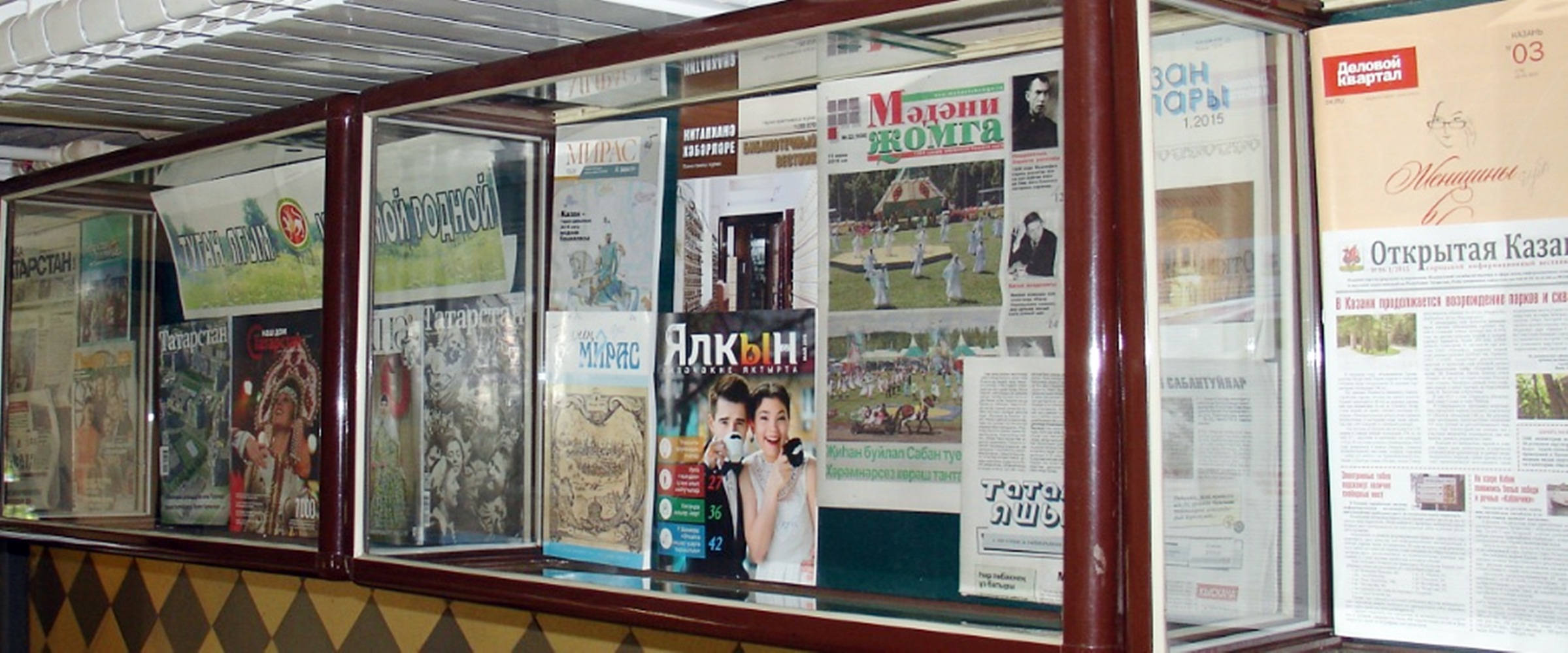 Әлеге күргәзмәдә «Татарстан», «Казань», «Идел», «Сөембикә», «Казан утлары», «Мәйдан», «Ватаным Татарстан», «Вечерняя Казань», «Татарстан яшьләре» һ.б. басмалар урын алган.