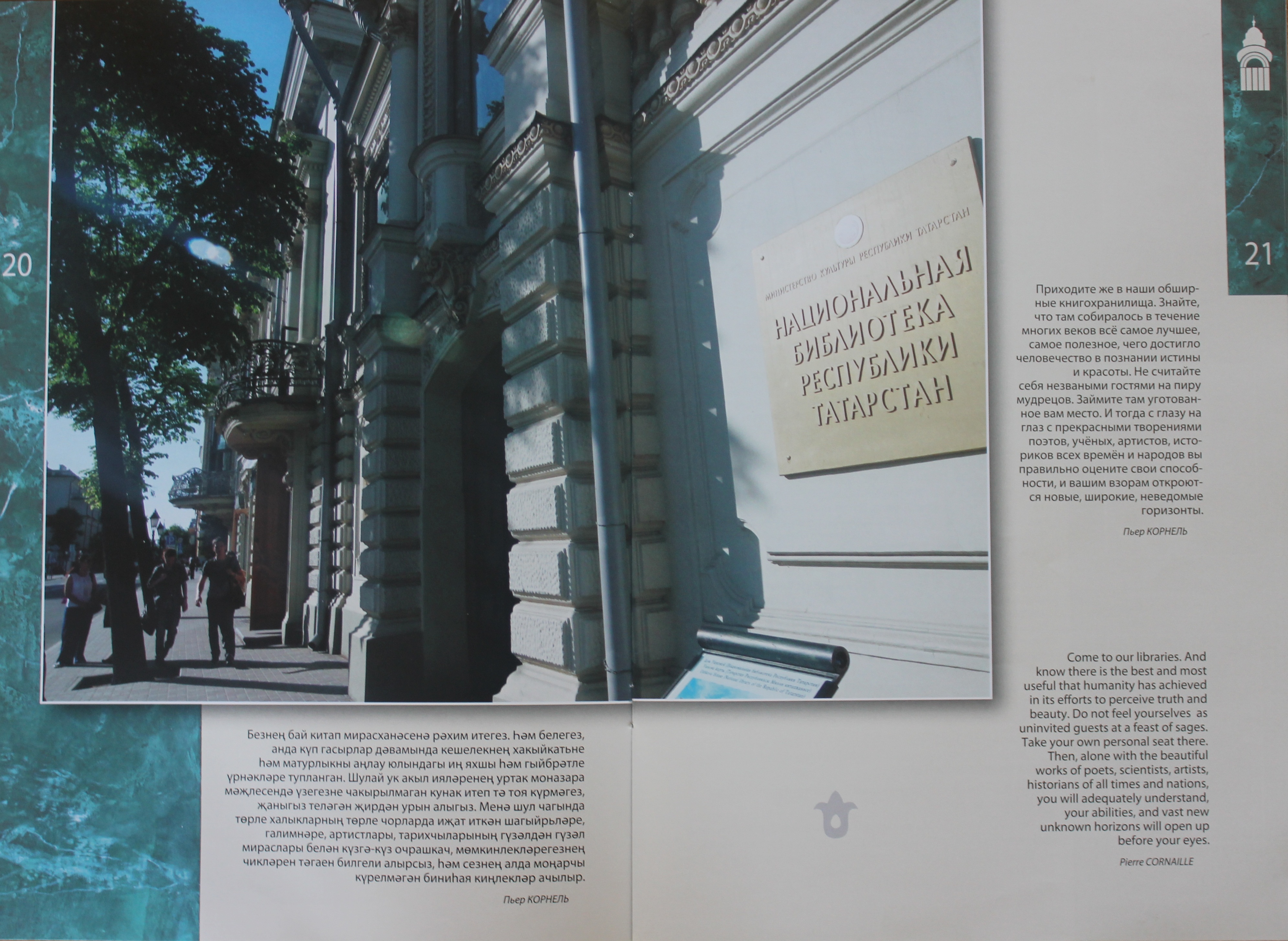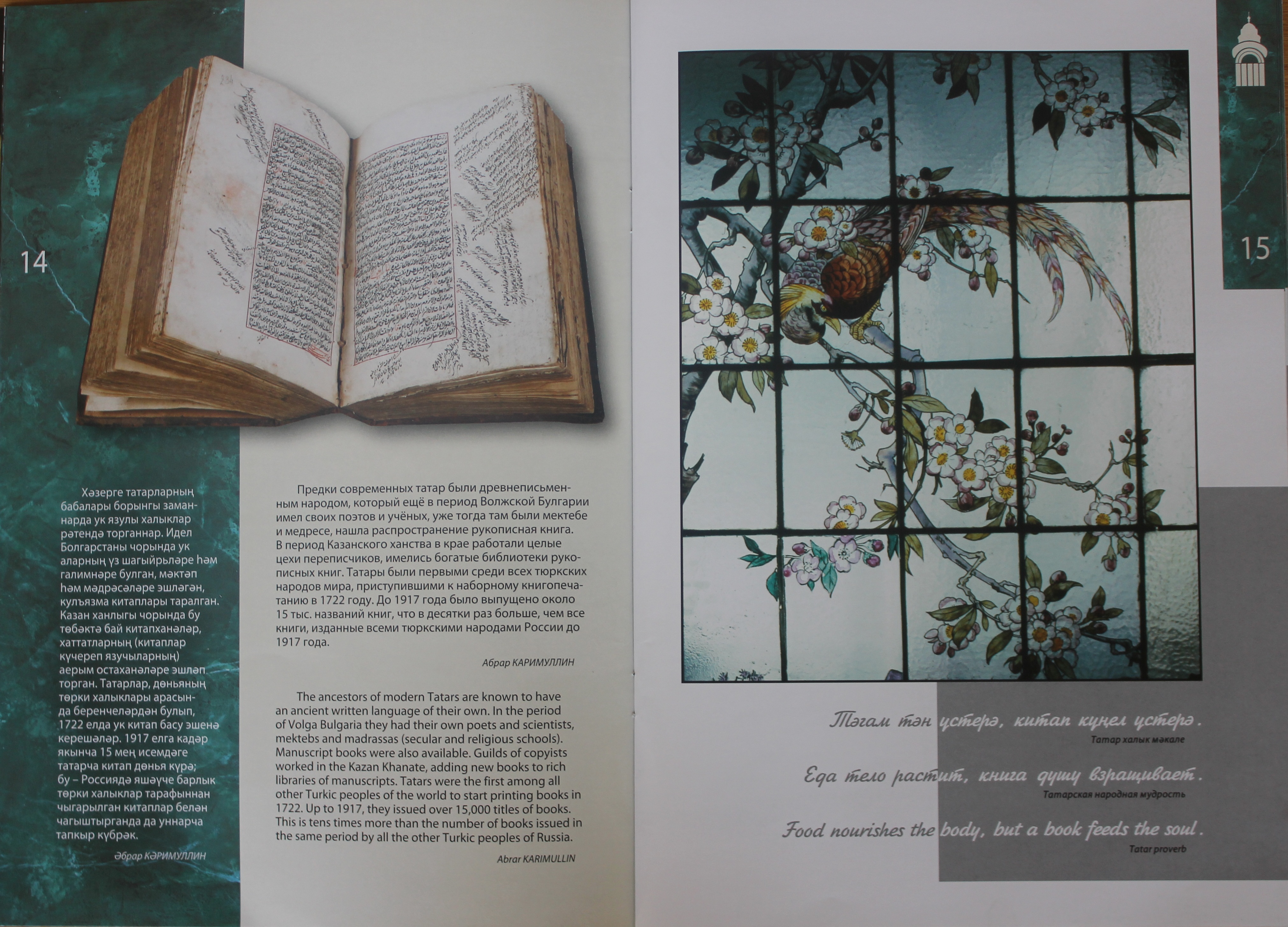 Буклетның быелгы басмасы да шундый ук уңышка ирешерме – вакыт күрсәтер. Әмма ул эчтәлеге белән дә, бизәлеше белән дә бик күпләрнең игътибарын җәлеп итәрлек. Биредә китапханәнең кызыклы тарихы, бай фондлары һәм тупланмалары, уникаль бинасы, бүгенге эшчәнлеге, күренекле шәхесләре турында мәгълүмат өч телдә – татарча, русча һәм инглизчә бирелгән.