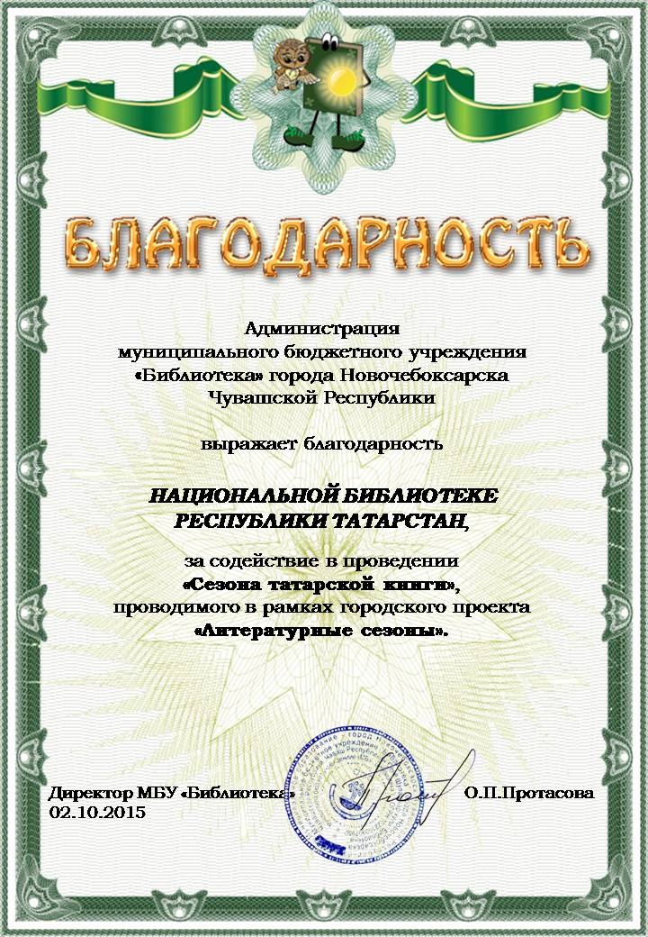 Чувашстан Республикасы Яңа Чабаксар (Новочебоксарск) шәһәренең Ю.Гагарин исемендәге Үзәк китапханәсе 2 октябрь көнне үзләрендә «Татар китабы сезоны»н ачып җибәрде. Тантаналы ачылыш шәһәрнең тарих һәм туган якны өйрәнү музеенда булды. Катнашучыларга «Кояшлы Татарстан – алтын төбәк» дигән әдәби-музыкаль композиция күрсәтелде, аның кысаларында балалар музыка мәктәбенең бию төркеме, татар һәм чуваш җырларын башкаручы Раниф Вахитов, шигырьләр иҗат итүче Фәридә Прудовская һәм Вячеслав Осипов чыгыш ясады.