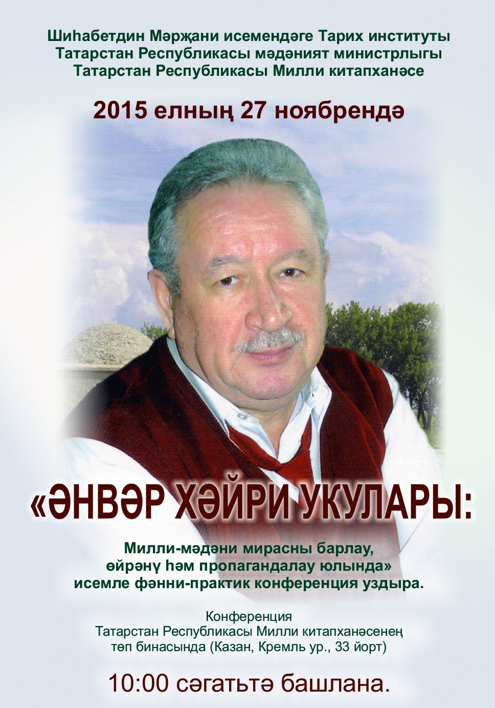 2015 нче елның 27 нче ноябрендә Татарстан Республикасы Милли китапханәсенең төп бинасындагы Зур уку залында «ӘНВӘР ХӘЙРИ УКУЛАРЫ: Милли-мәдәни-мирасны барлау, өйрәнү һәм пропагандалау юлында» исемле фәнни-гамәли конференция узды. Аны Шиһабетдин Мәрҗани исемендәге Тарих институты, Татарстан Республикасы мәдәният министрлыгы һәм Татарстан Республикасы Милли китапханәсе галим Әнвәр Хәйри истәлегенә багышлап оештырды.