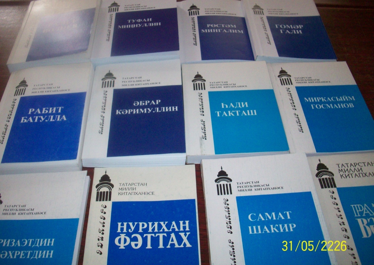 Татарстан Республикасы Милли китапханәсе 1996 елдан бирле «Татар әдипләре» («Деятели литературы и искусства Татарстана») дигән сериядән биобиблиографик басмалар чыгарып килә. Егерме ел дәвамында Разил Вәлиев, Нурихан Фәттах, Һади Такташ, Рабит Батулла, Самат Шакир, Айдар Хәлим, Ризаэтдин Фәхретдин, Гомәр Гали, Миркасыйм Госманов, Рөстәм Мингалим, Әбрар Кәримуллин, Туфан Миңнуллин һ.б. тормышларын һәм иҗатларын чагылдырган белешмәлекләр төзелеп нәшер ителде.