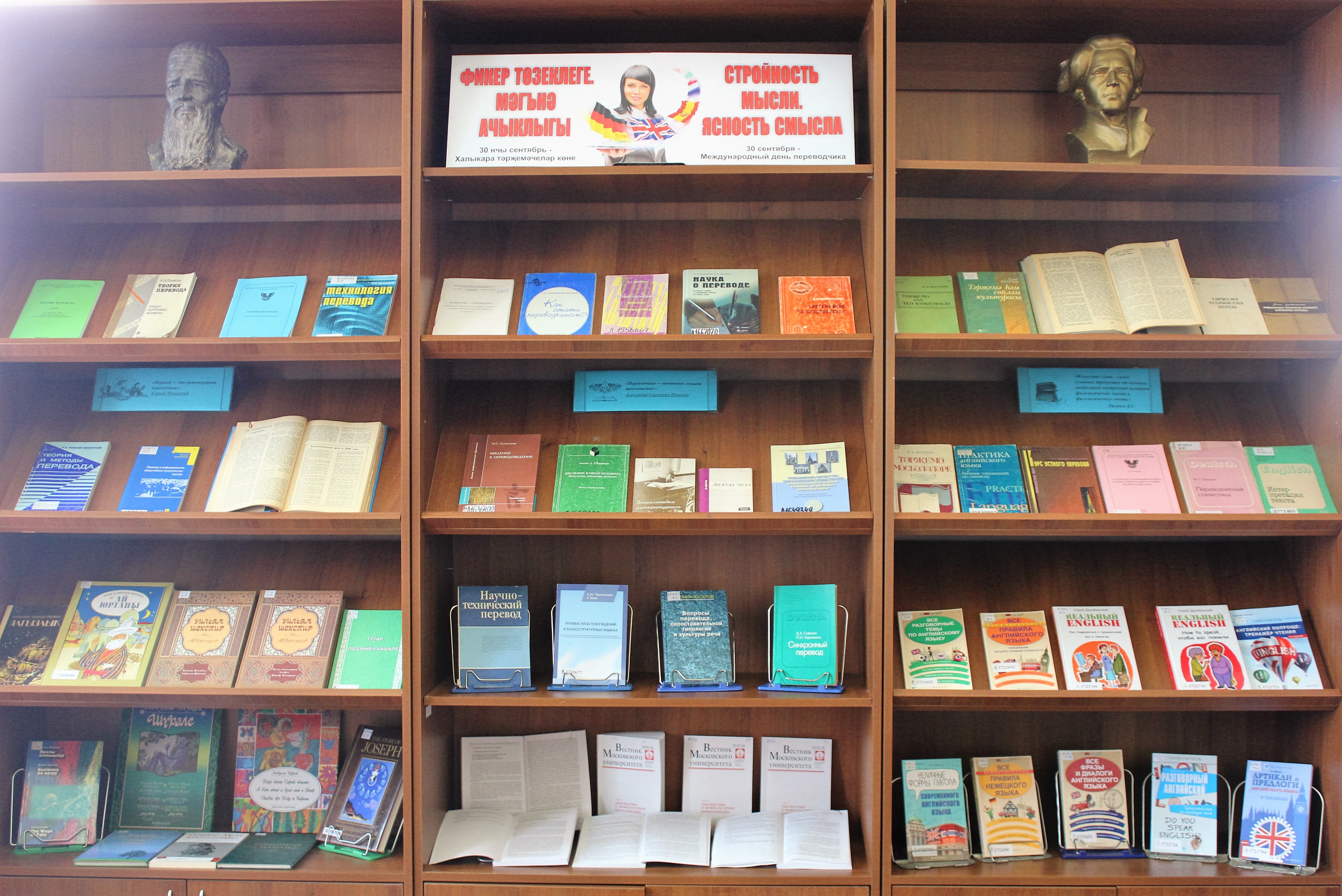 Татарстан Республикасы Милли китапханәсенең күргәзмәләр һәм мәдәни программалар бүлеге (Казан, Кремль ур., 33 нче йорт), һәр елның 30 нчы сентябрендә билгеләп үтелә торган Халыкара тәрҗемәчеләр көненә багышлап, «Фикер төзеклеге. Мәгънә ачыклыгы» исемле күргәзмә тәкъдим итә.