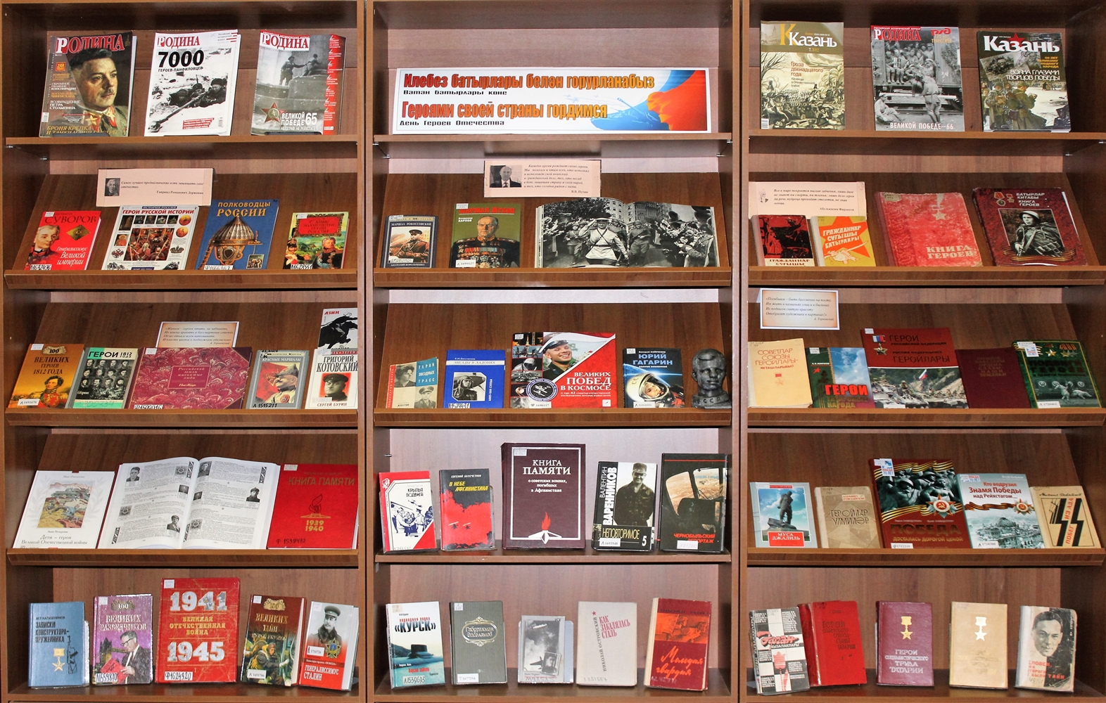 Күргәзмәдә Татарстан батырларына багышланган китаплар да урын алган. Алар аша Гражданнар һәм Ватан, Әфган сугышларының легендар геройлары, Социалистик Хезмәт Геройларының кызыклы язмышлары белән танышып була. Сугыш елларында Татарстан Кызыл Армия тыл базаларының берсе булып тора, республикада туып үскән кешеләр сугыш кырларында һәм партизаннар хәрәкәтендә актив көрәшәләр. Фронтовик-шагыйрь Муса Җәлил һәм данлыклы Михаил Девятаев батырлыгын тасвирлаучы китаплар экспозицияне баета.