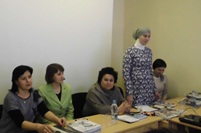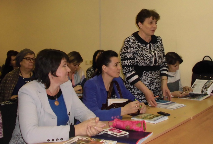 Китапханә хезмәткәрләре иң элек Китапханәнең тарихы, аның бай фондлары турында сөйләделәр, шулай ук мөгаллимнәр, тәрбиячеләр өчен чыгып килүче төрле газета-журналлардан әзерләнгән «Укытучылар, сезнең өчен» дип исемләнгән күргәзмәгә күзәтү ясадылар.