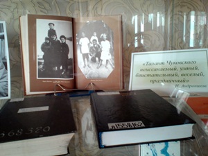Күргәзмәдә күренекле совет шагыйре, публицист һәм әдәби тәнкыйтьче К.И.Чуковскийның ике томлы әсәрләр җыентыгы, аның тормышына һәм иҗатына багышланган китаплар, замандашларының истәлекләре, әсәрләренең библиографик күрсәткечләре һ.б. тәкъдим ителә. Биредә шулай ук балалар өчен язылган, әле хәзер дә әһәмиятен югалтмаган аерым басмалары да урын алган. 2015 нче ел мәгълүматларына караганда, К.И.Чуковский Россия Федерациясендә иң күп нәшер ителә торган автор булып танылган. Аның шушы күргәзмәгә куелган, татар теленә тәрҗемәдә дөнья күргән әсәрләре дә әдәбият сөючеләр игътибарыннан читтә калмас.